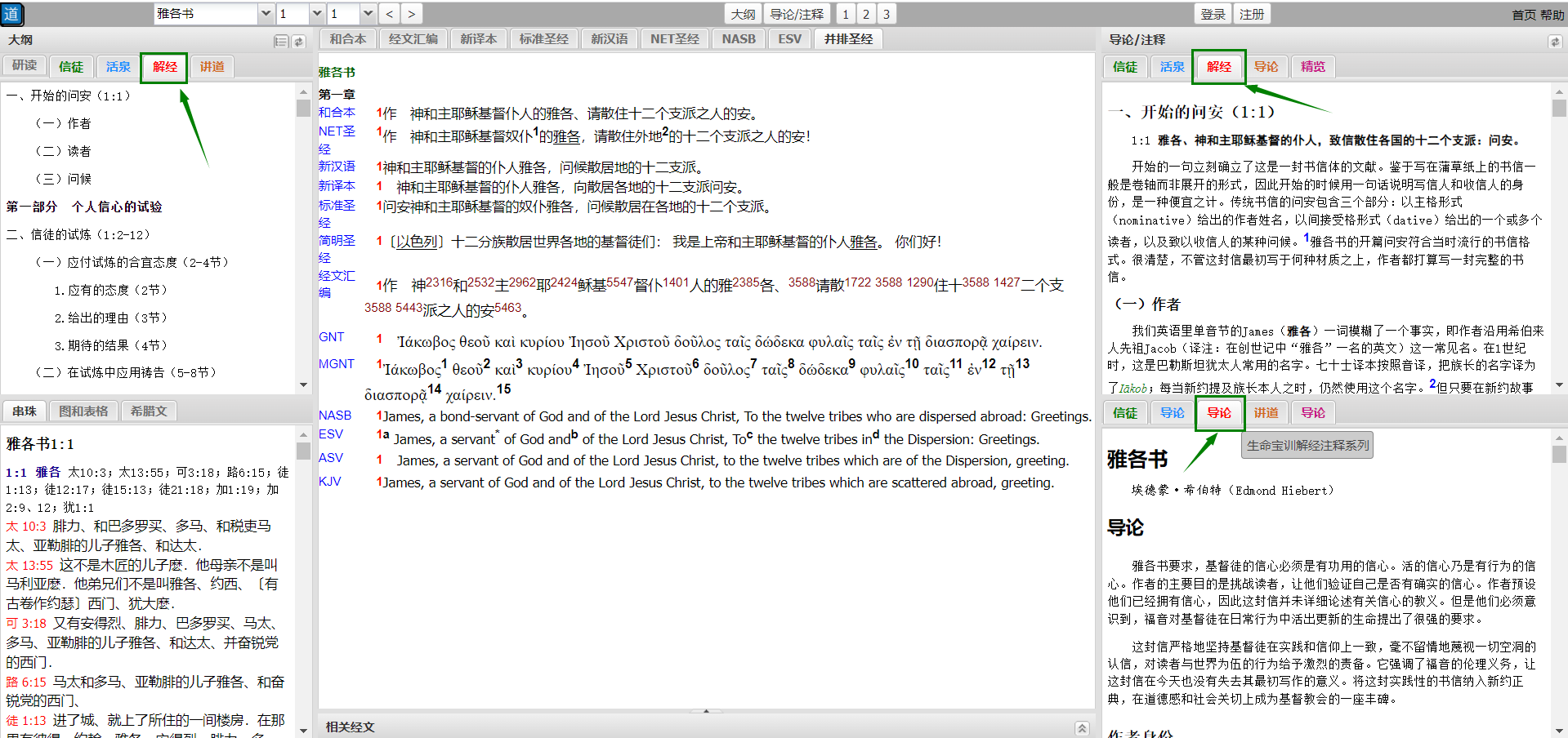 请您注册研经工具的账号,选择雅各书,并标签选择“解经”,即可阅读该注释的大纲、导论和注释。