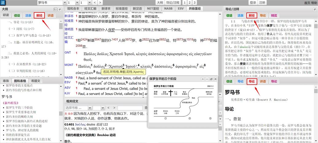 使用说明:请您注册研经工具的账号,选择罗马书,并标签选择红色“解经”,即可阅读该注释的大纲、导论和注释。