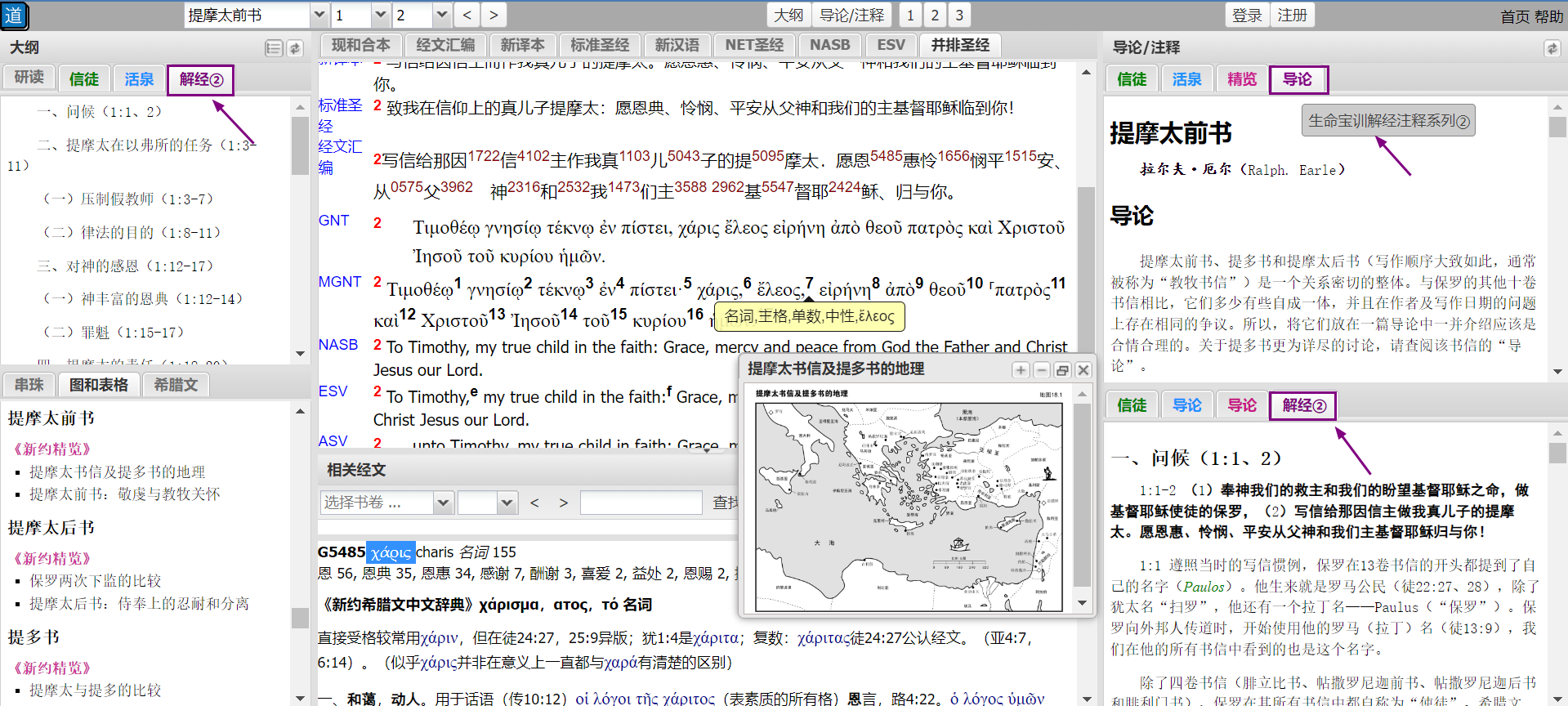 并标签选择“解经”,即可阅读该注释的大纲、导论和注释。