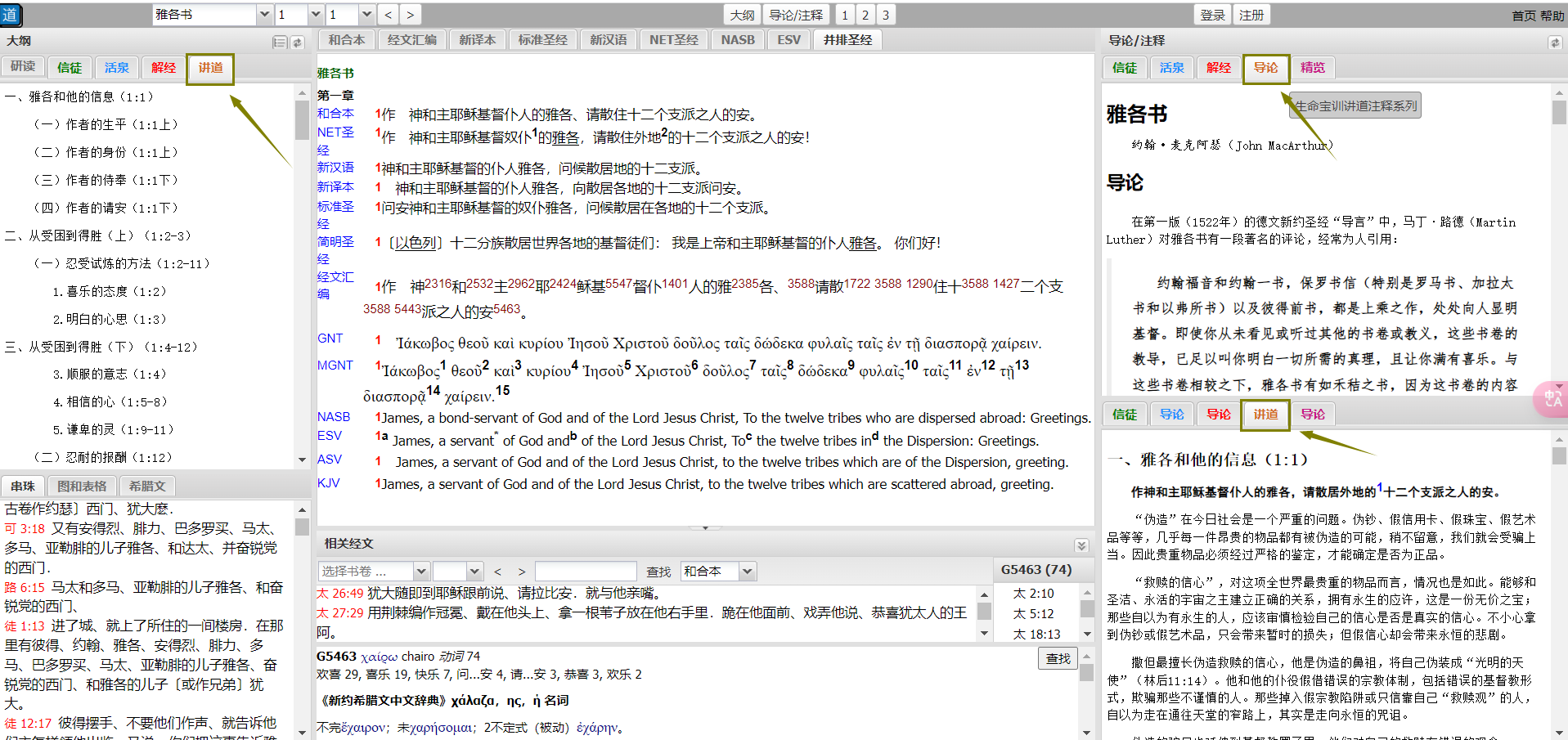 供用户免费使用。请您注册研经工具的账号,选择雅各书,并标签选择“讲道”,即可阅读该注释的大纲、导论和注释。