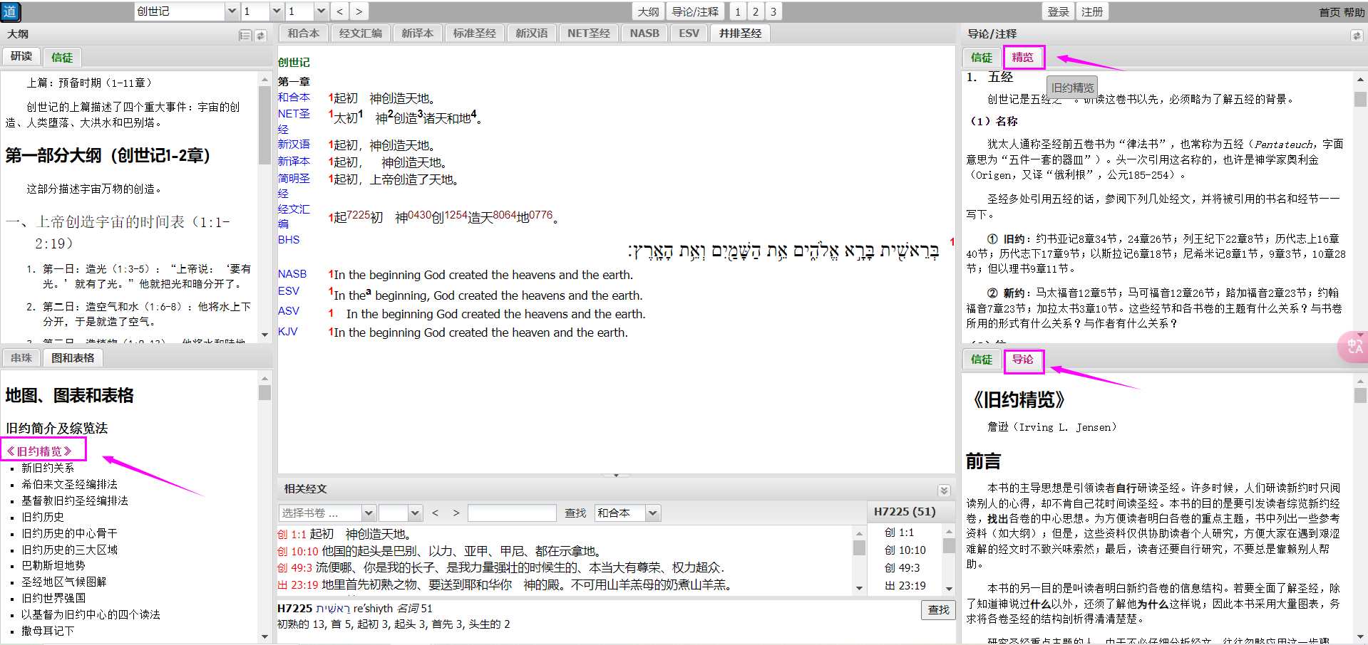 在标签中选择“精览”,即可阅读新约精览的导论和注释。