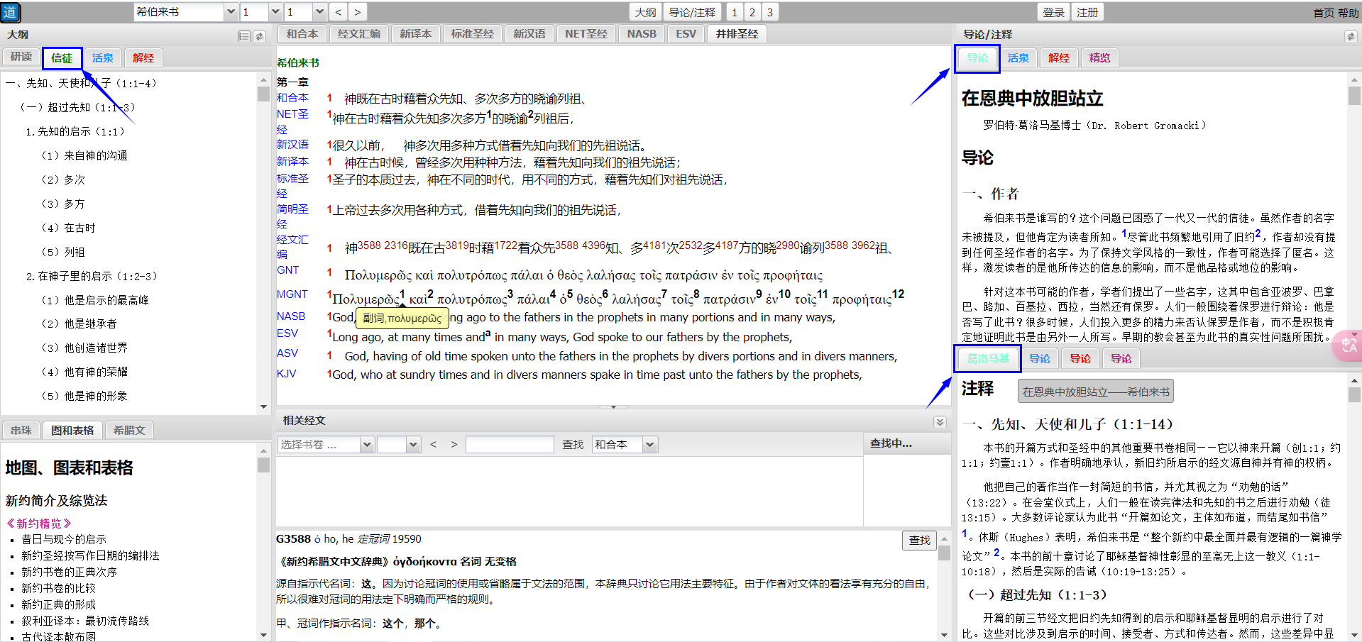 请您注册研经工具的账号,选择希伯来书,