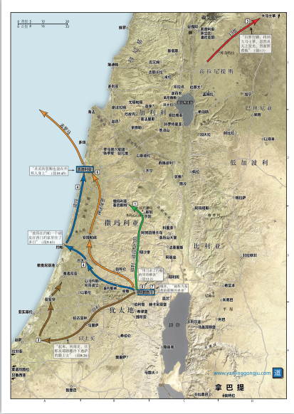 👉对应地图与说明:1-2「亚伯拉罕与以撒」(来自:研经工具)