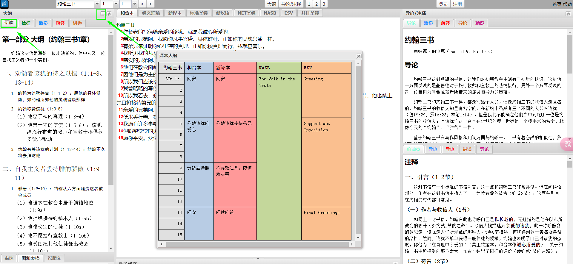 快捷查找:每个大纲均附经节索引,可快速定位