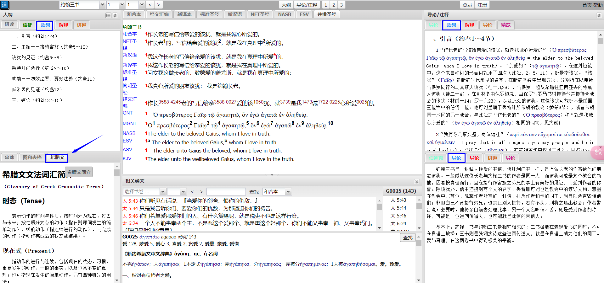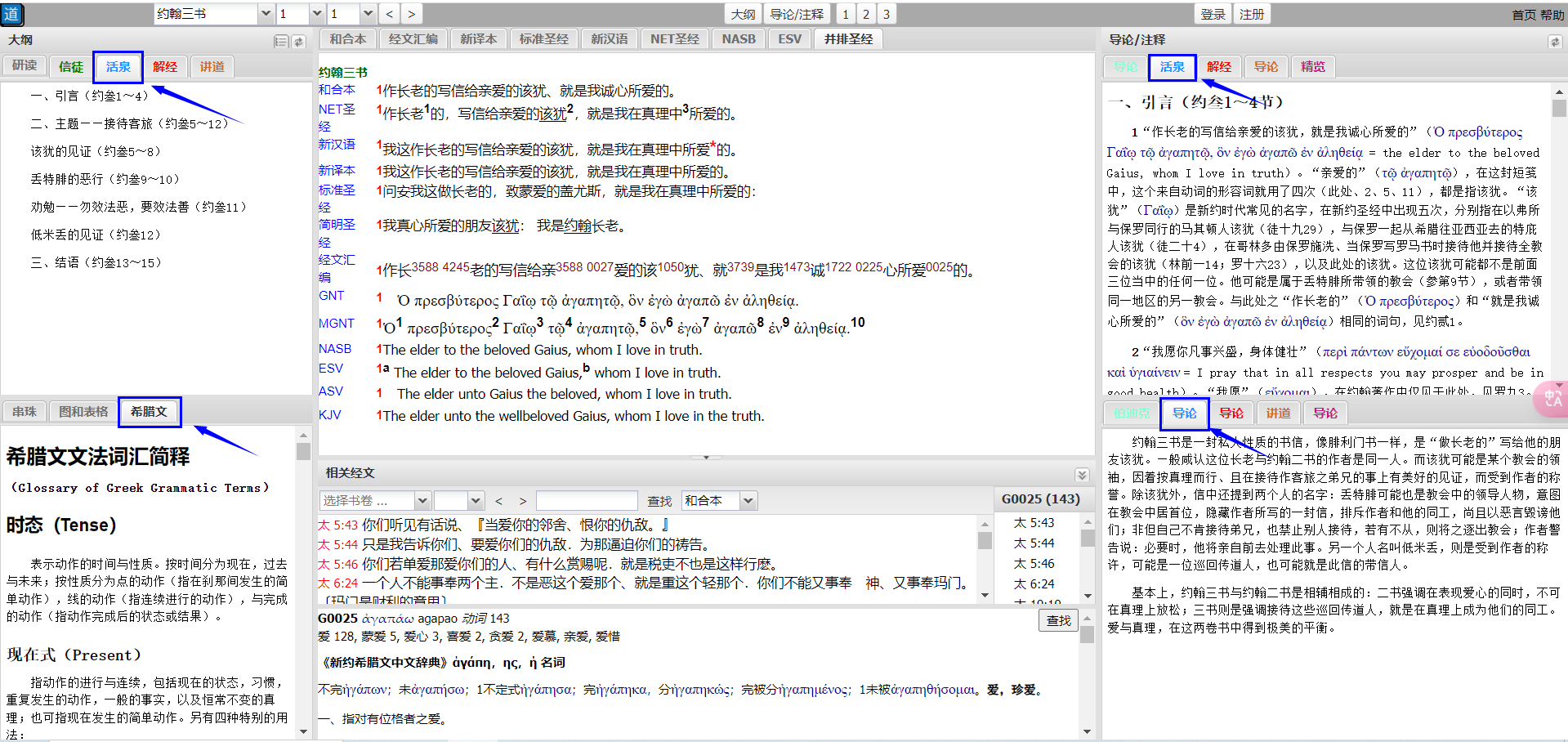 标签选择“活泉”,即可阅读活泉注释的大纲、导论和注释。