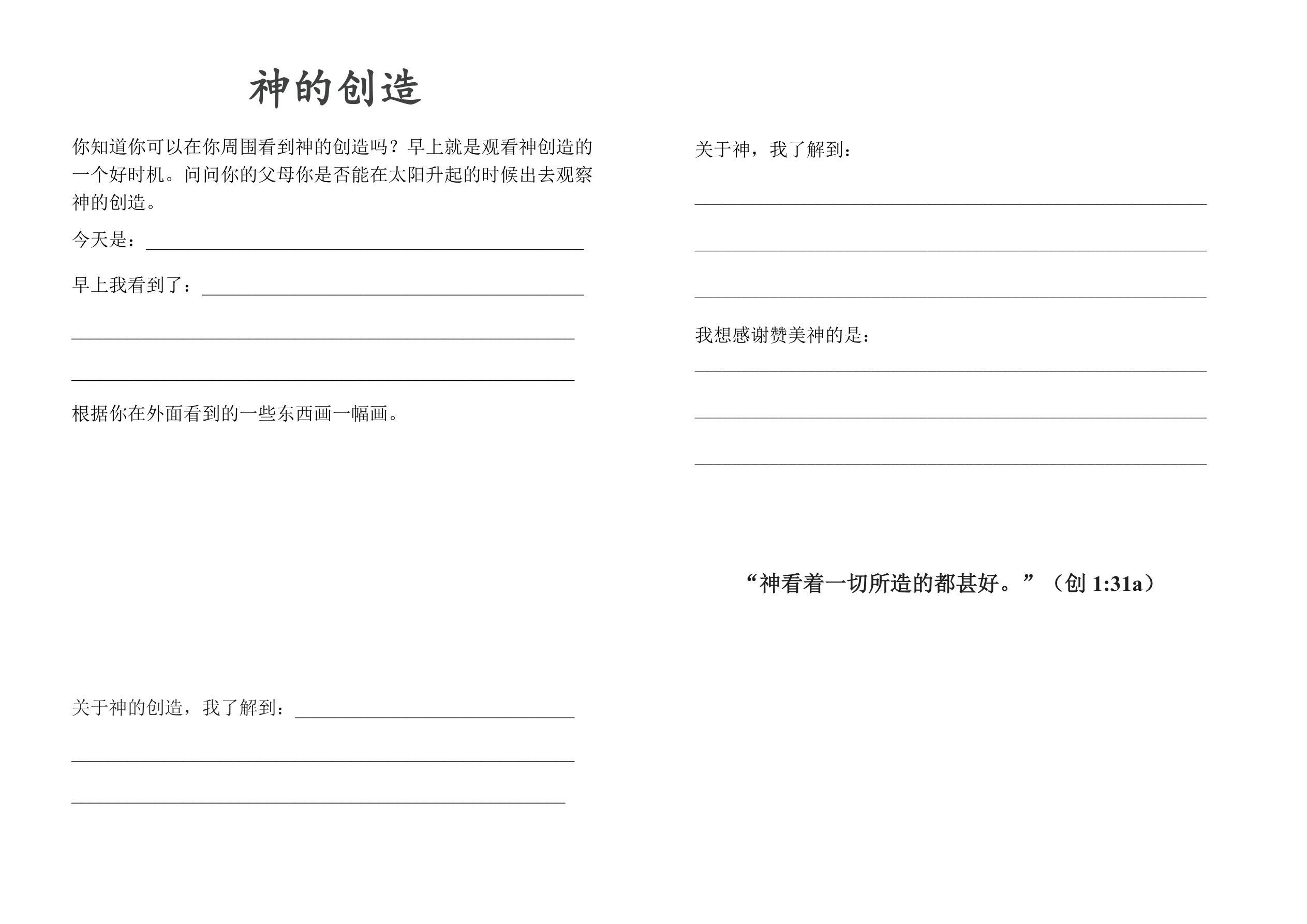 周二:再次研读经文,这次阅读本课程体系的圣经背景和引导问题部分。记笔记,划下其中的重点以及你希望询问孩子的特殊问题。