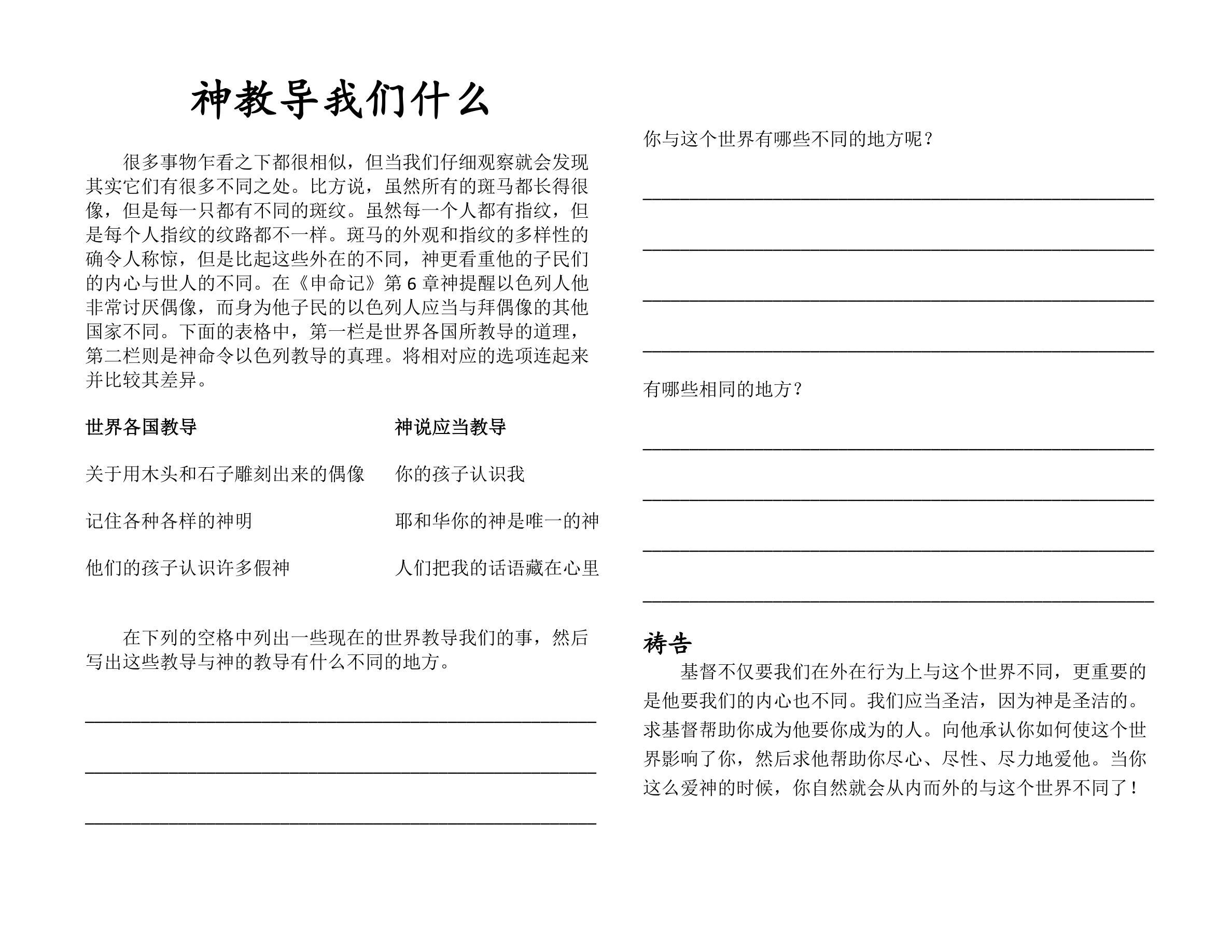 作为一名主日学老师,你的目标是,在每周努力把福音真理传授给这些年轻生命的同时,把课程内容的影响最大化。在每周的168个小时中,你跟孩子共度的只有1-3个小时。为了确保能高效利用这几个小时,你有如下几条职责: