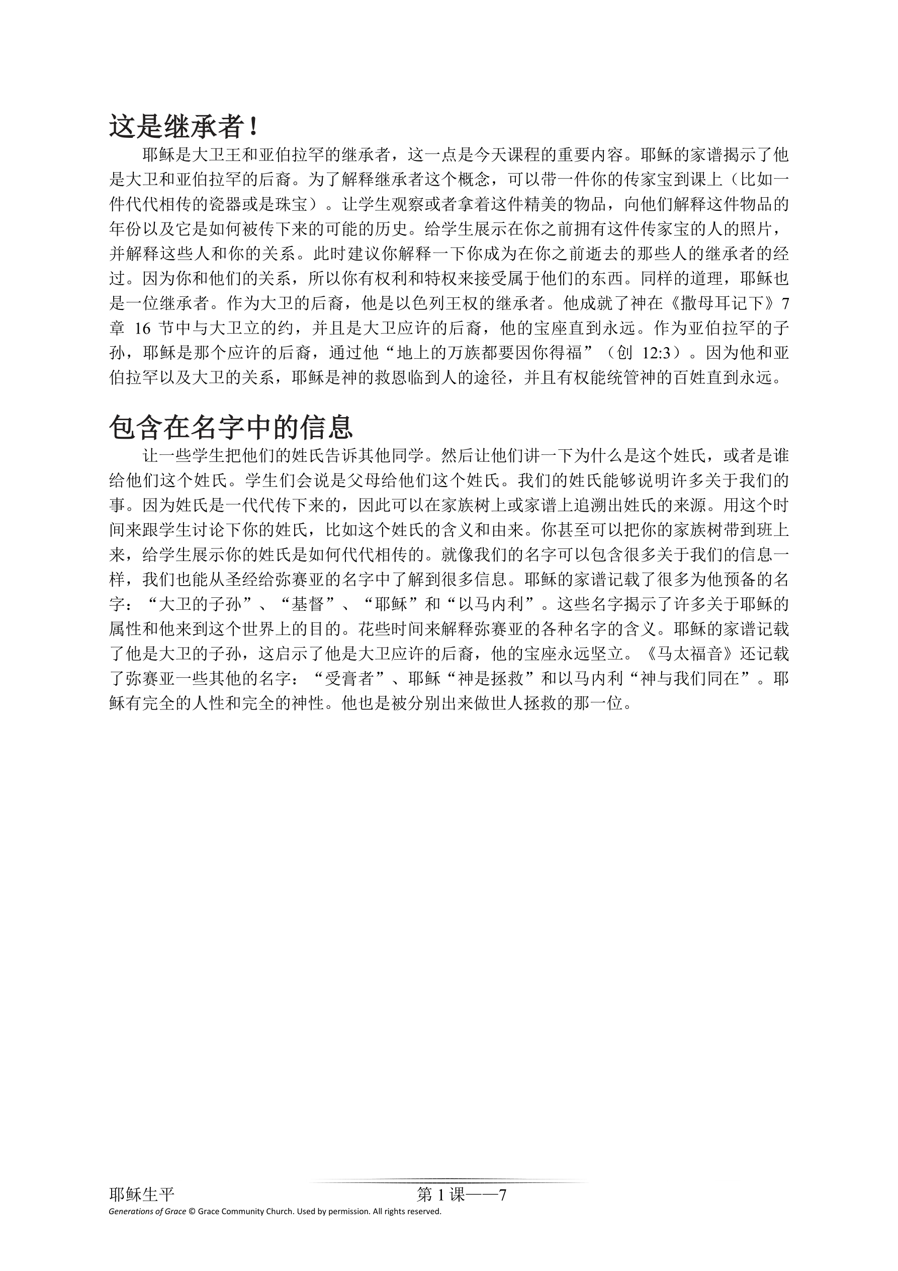 《恩典的传承》是以圣经为基础、以神为中心的一套教材,课程体系旨在用耶稣基督的福音影响孩子的心灵,专为3-11岁的儿童设计。