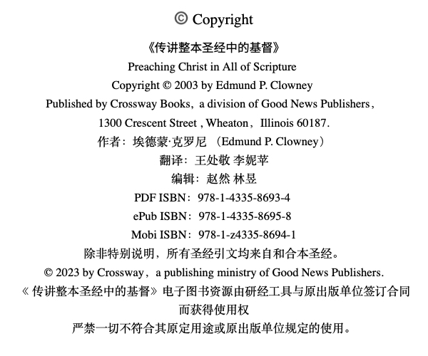 版权声明:电子图书馆提供免费的电子书资源,根据版权方要求,这些资源仅限于网页浏览使用。希望我们一起维护网络版权环境,并以此荣耀上帝!