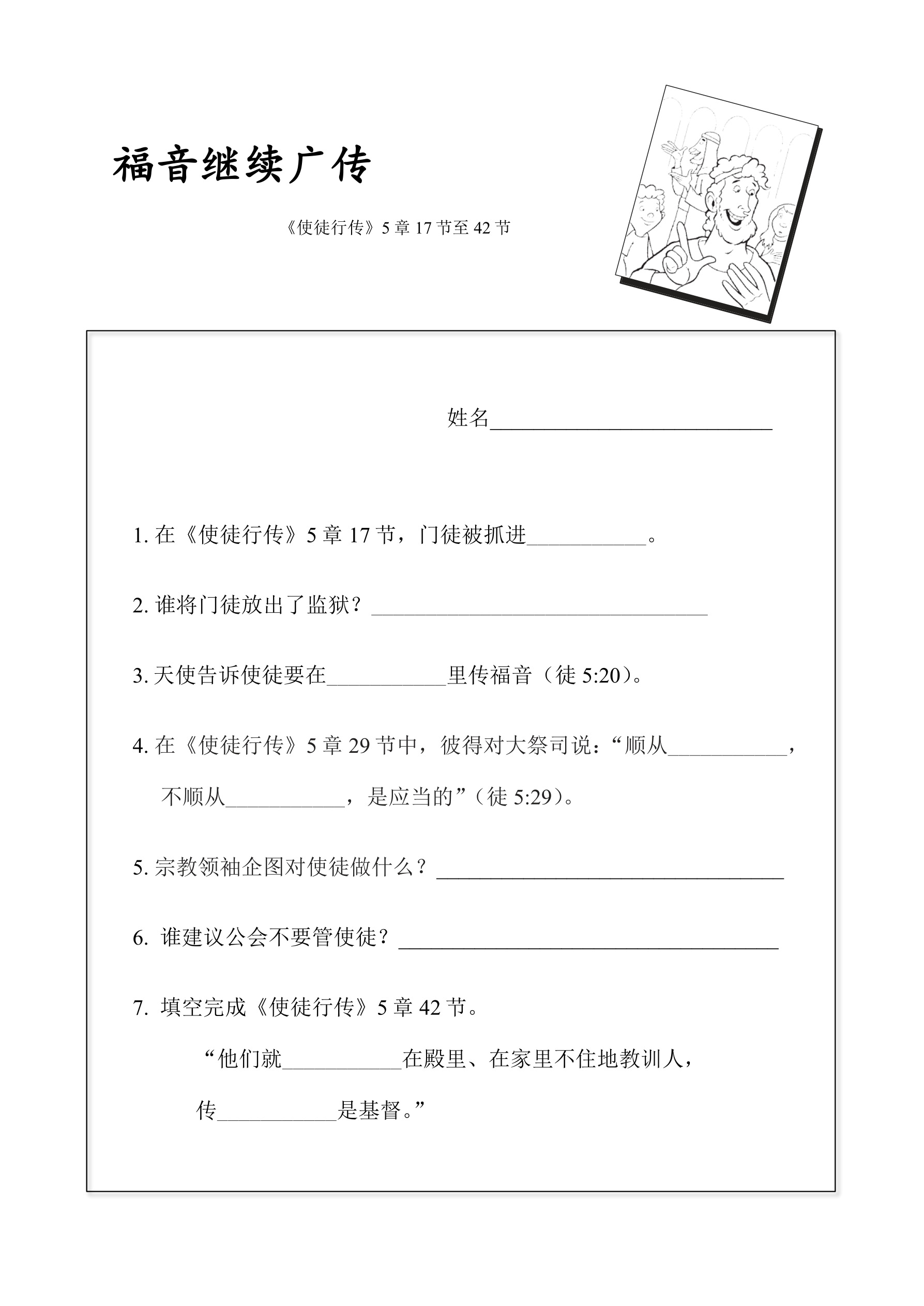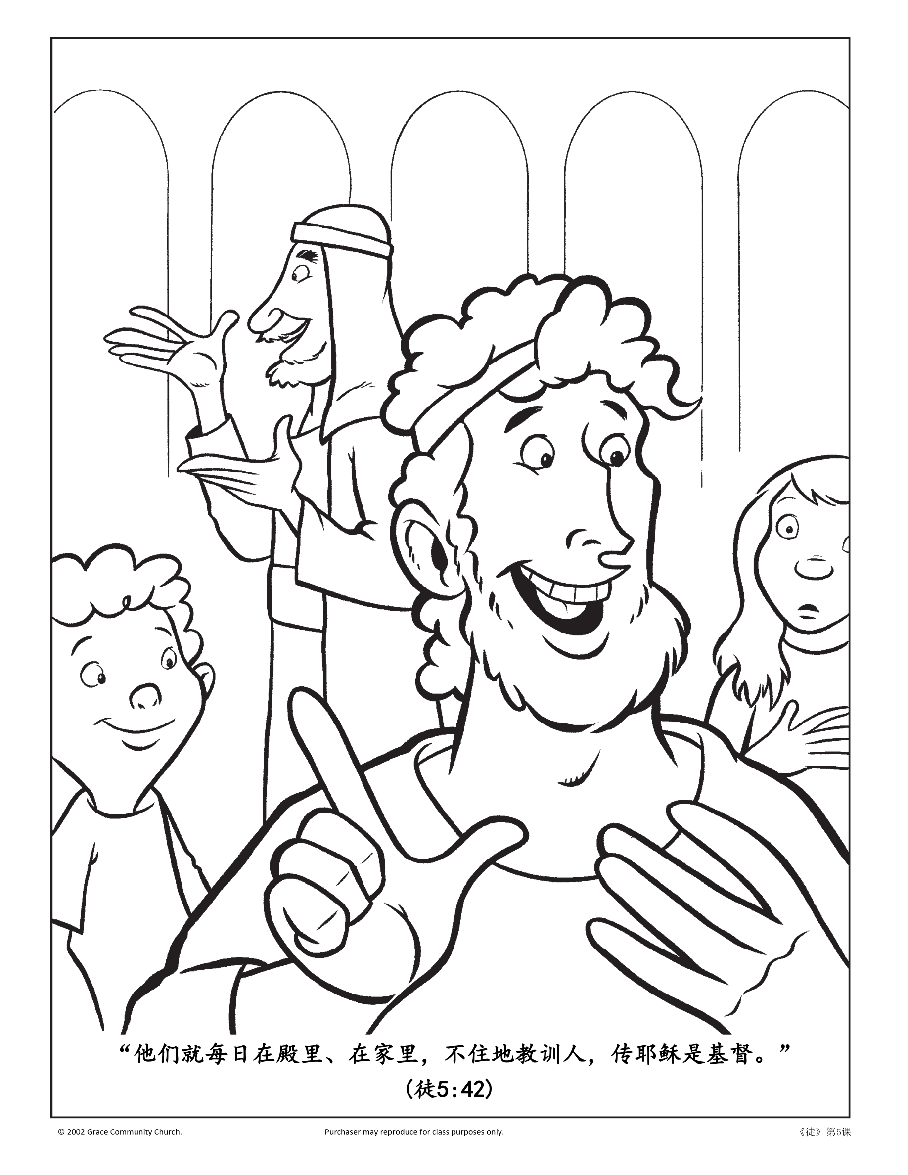 或者,老师也可以重新编写本节课内容可能涉及的故事场景。比如老师会扮演成使徒,和众人分享福音。表演到最后,使徒们被逮捕,但是却奇迹般地得释放并开始继续传扬福音。