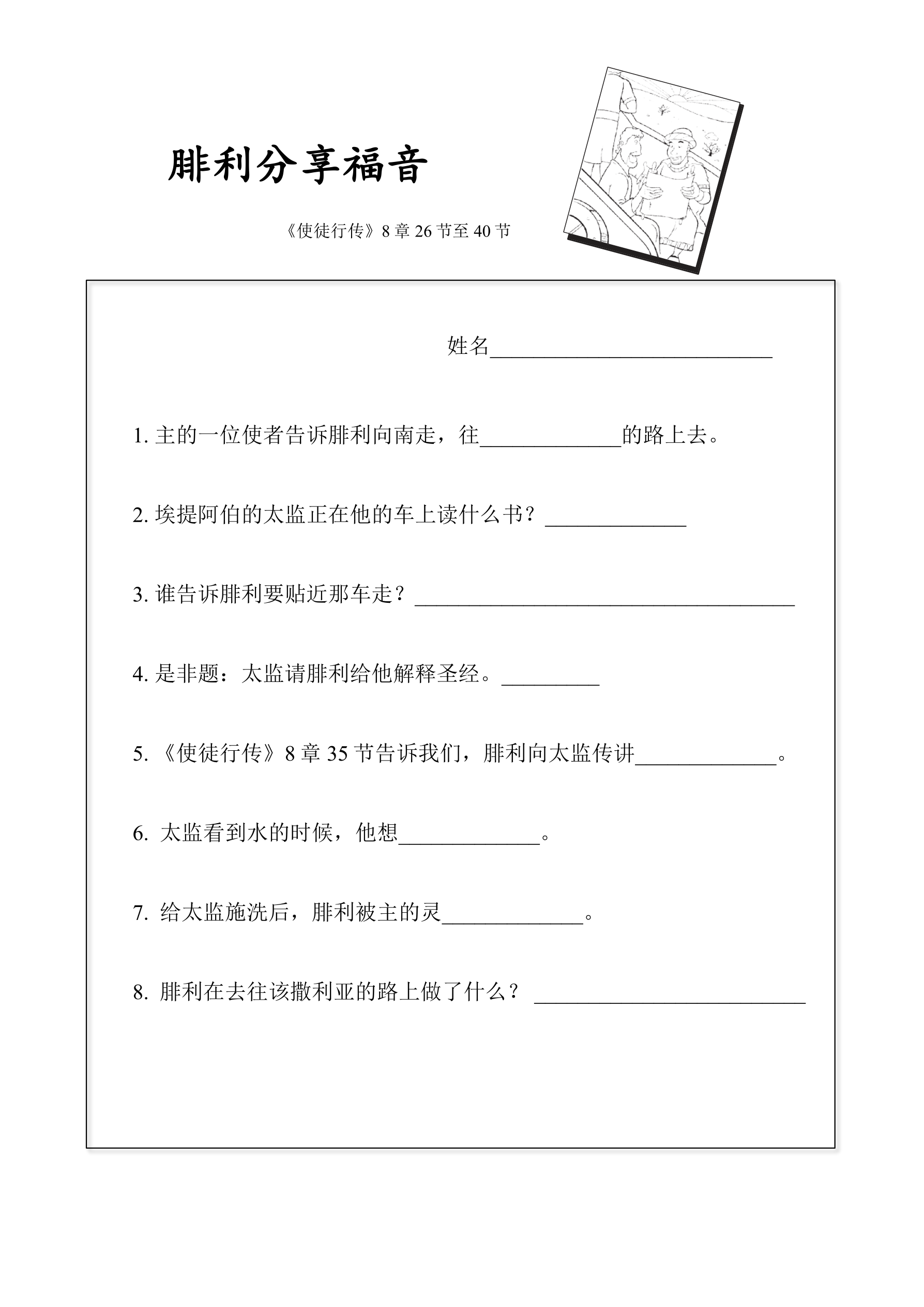 不明白,腓利就跟他解释那段经文的意思,并分享了神通过耶稣基督带来的好消息。
