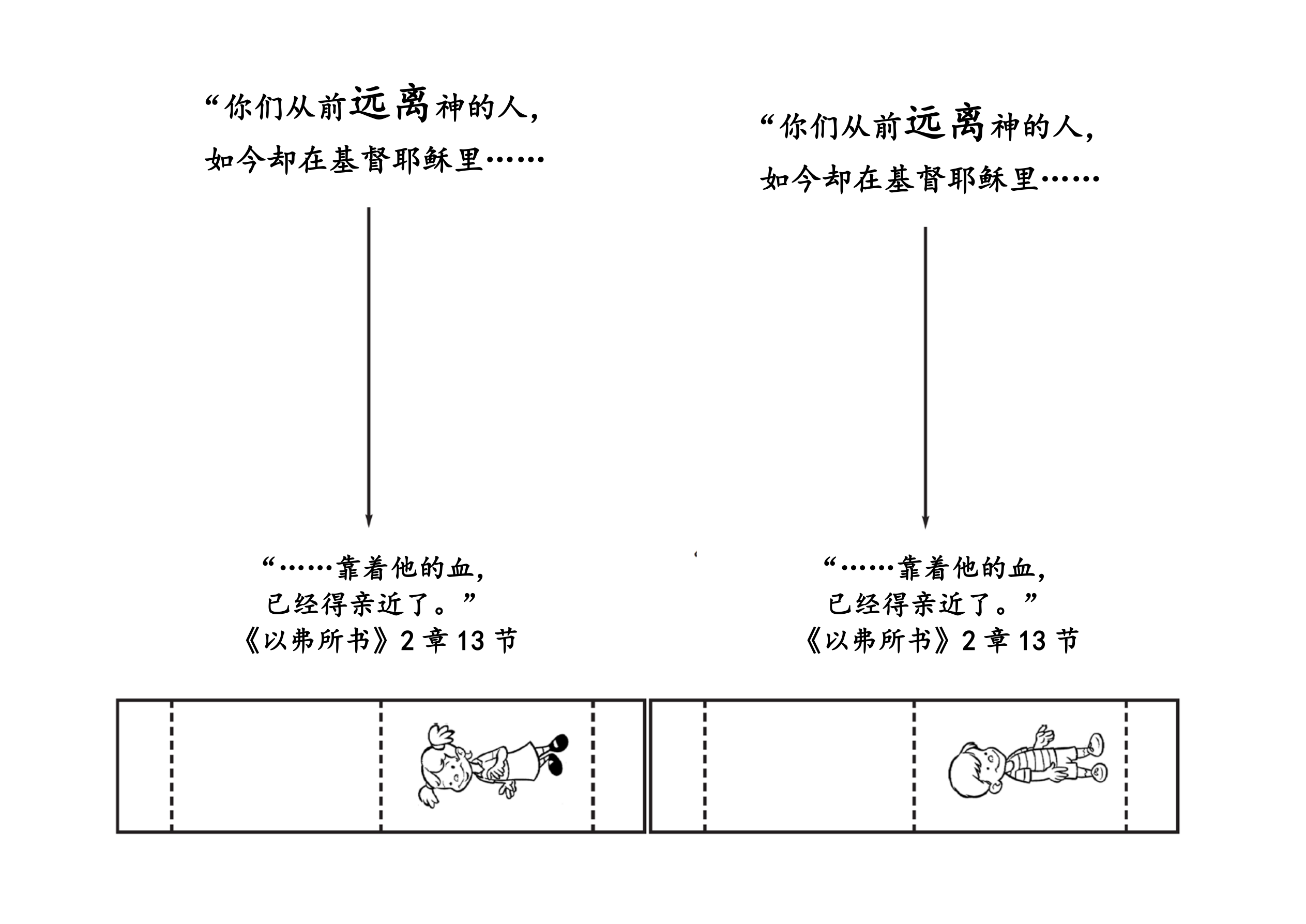 所需材料:“《以弗所书》213节”手工页的复印件(剪成半页)、回形针、磁铁、剪刀和蜡笔。