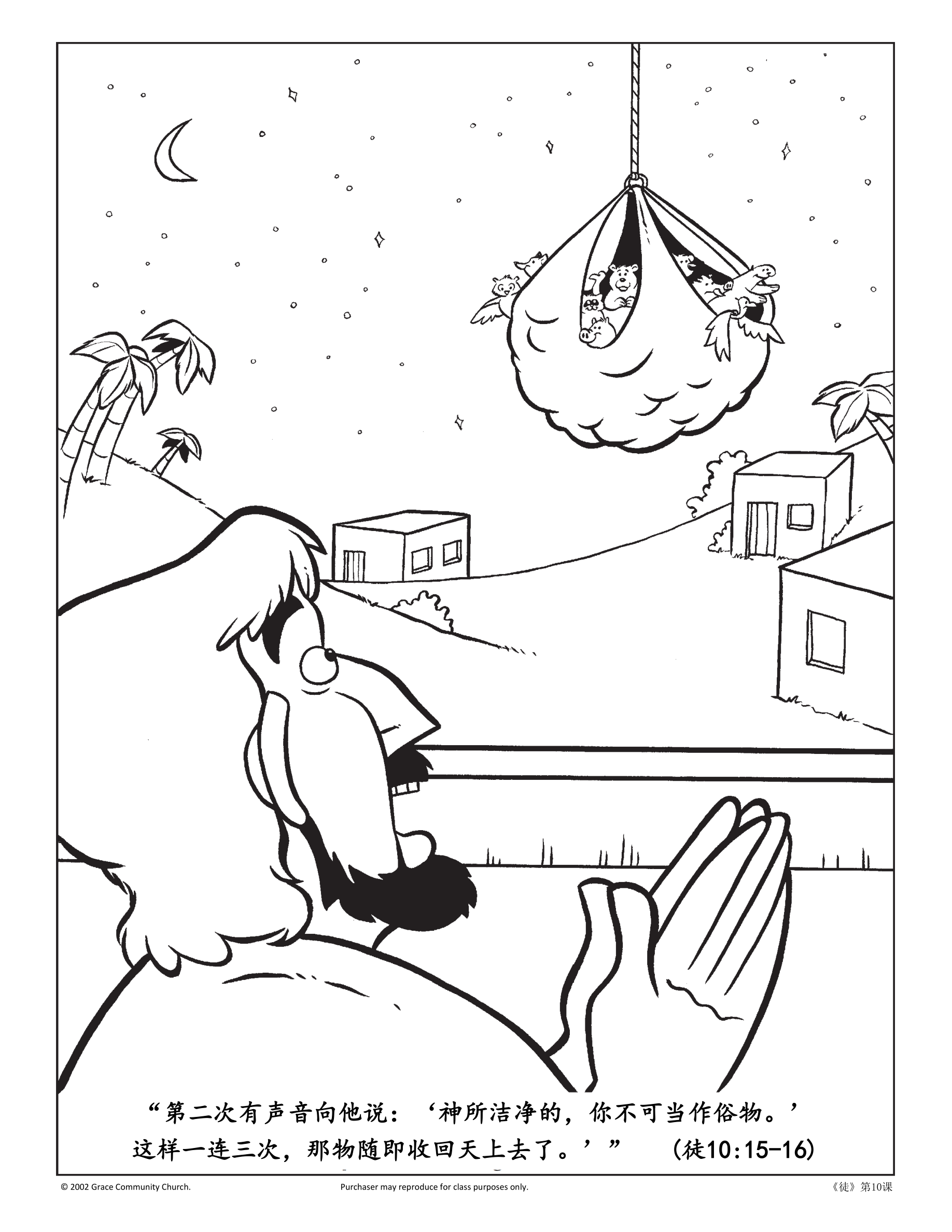异象:异象和梦一样。跟学生解释,在圣经写就之前神有时会在梦中跟人说话。彼得看见一块大布并且听见神说话,但是其他人却不能。