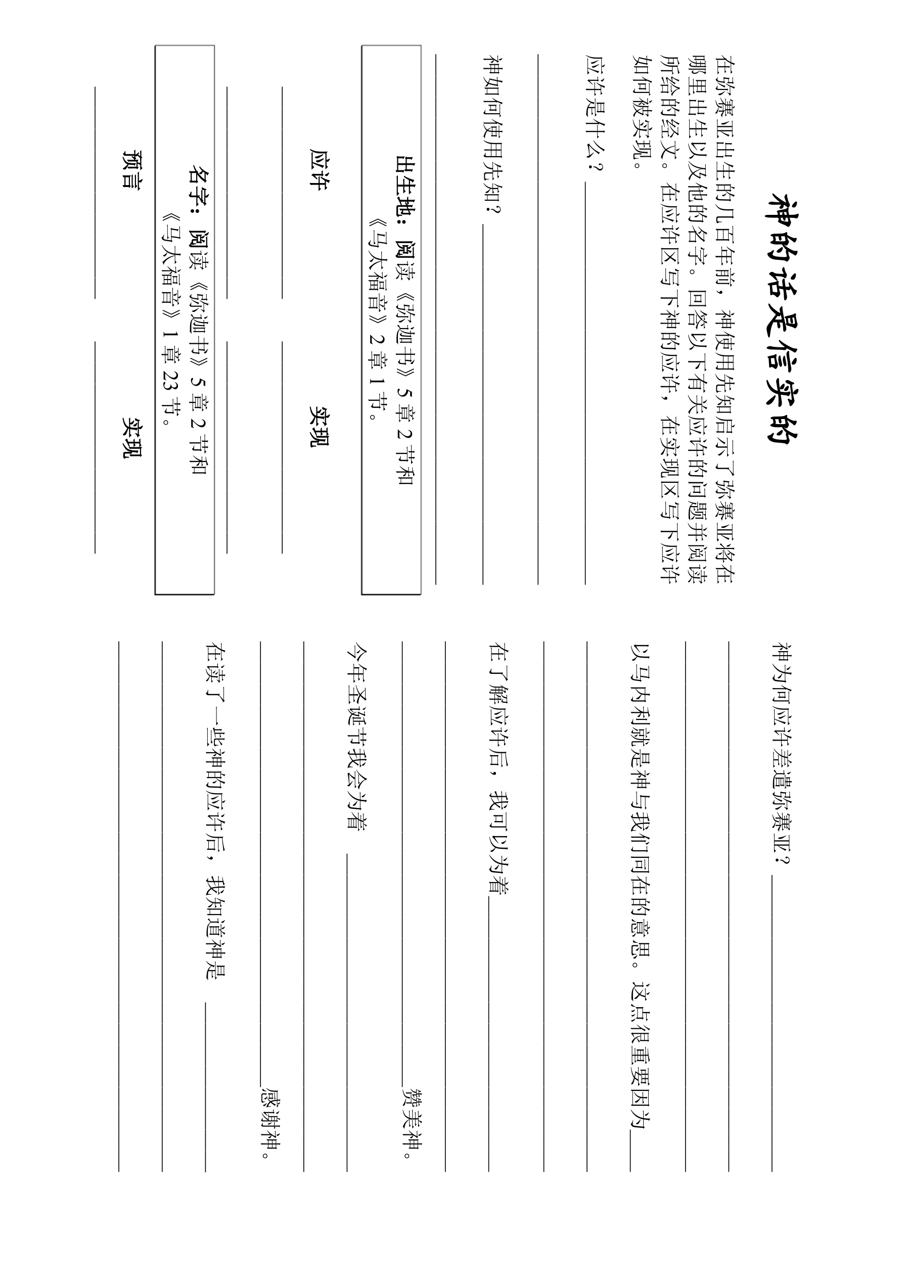 问学生是否曾跟别人做过承诺,然后问他们是兑现了还是违背了他们的承诺。不能兑现承诺时会发生什么事?别人没能兑现对你的承诺时,你有什么感觉?神从不背乎他的应许。今天,我们就来谈论神过了700年才成就的应许。