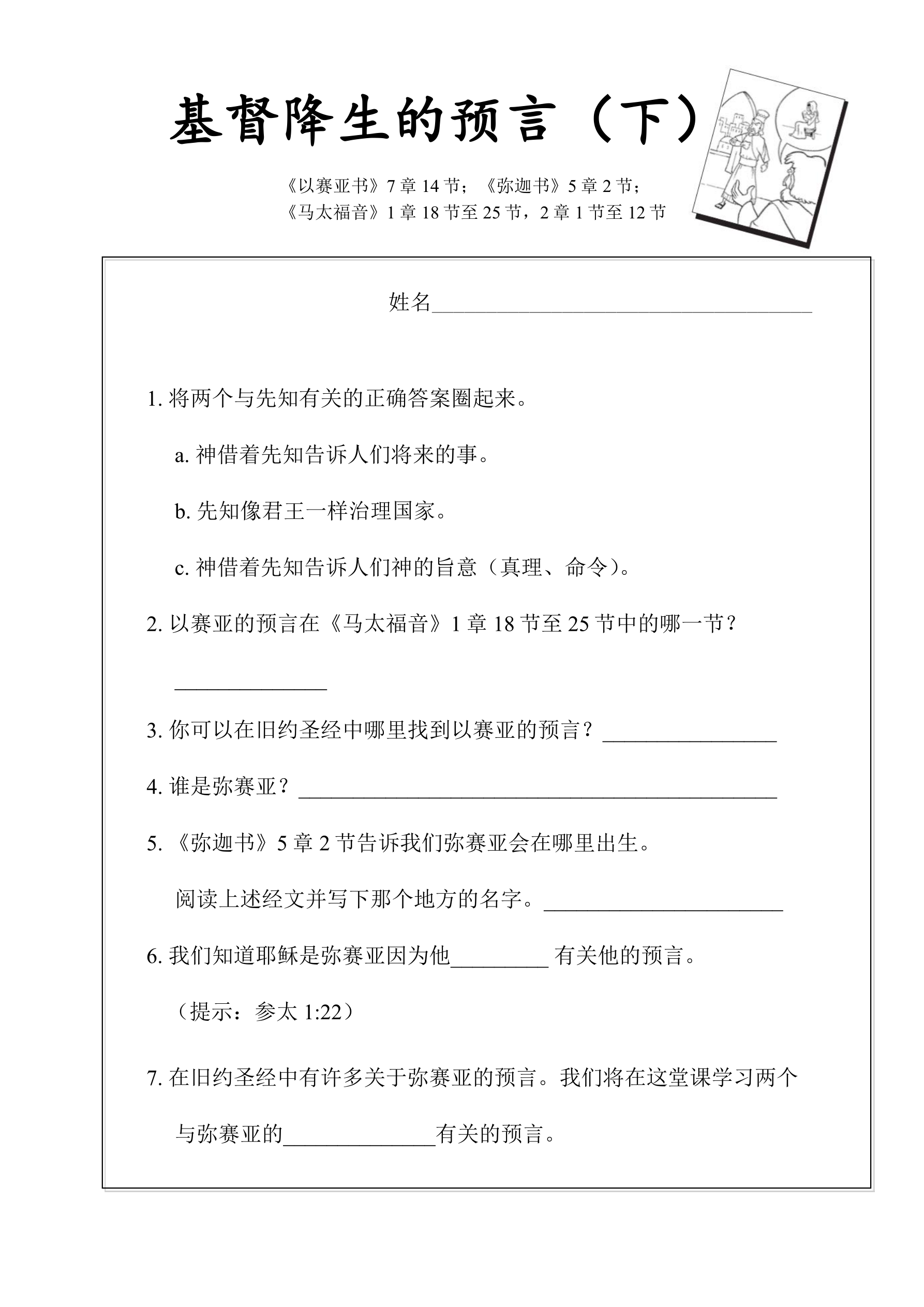 引导问题:根据《马太福音》1章18节至25节,哪节经文能使你想起我们刚说的以赛亚的预言?