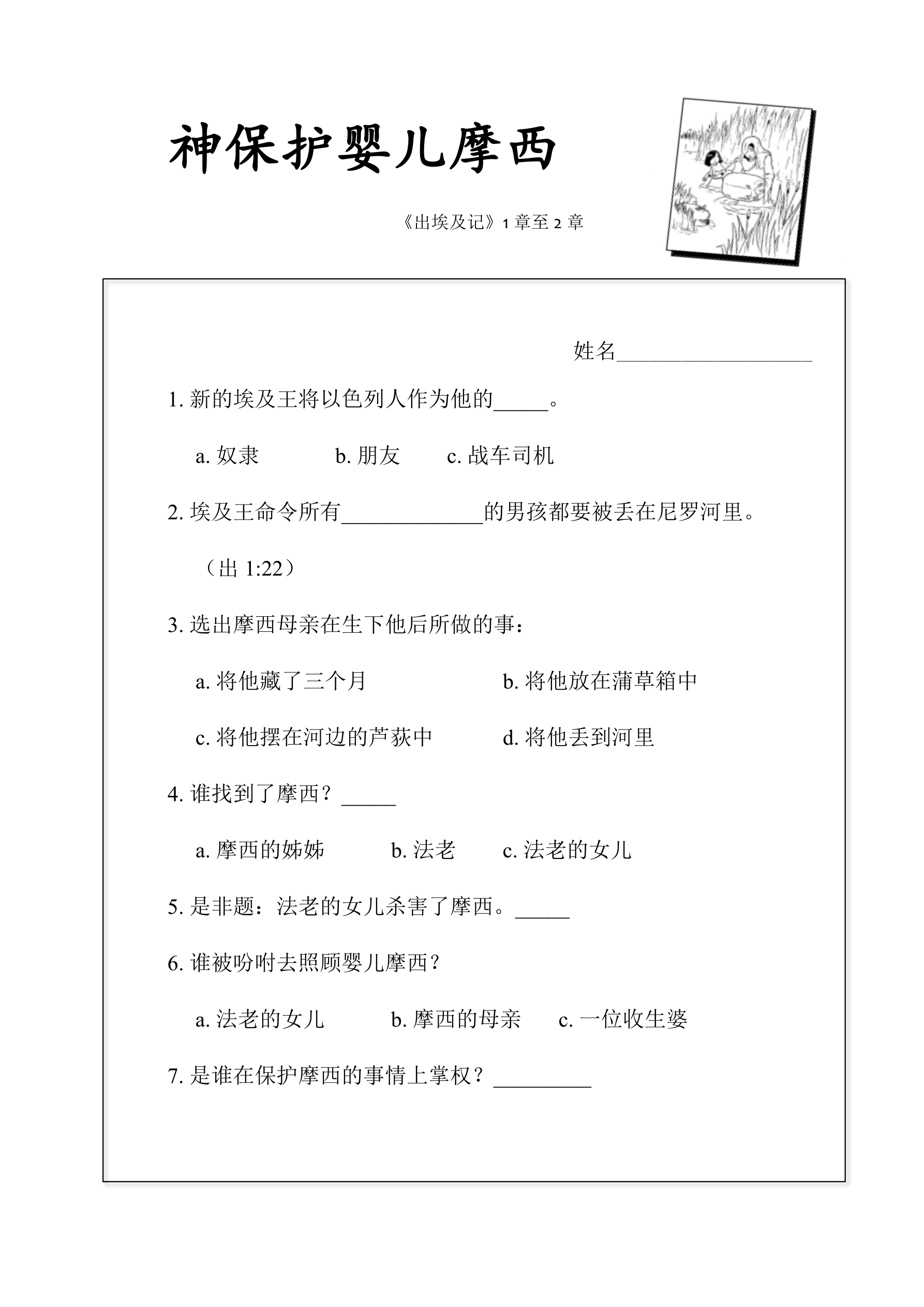 引导问题:你觉得摩西的母亲在把摩西放到蒲草箱中并任箱子在水中漂流时,她心里是什么感受?神如何使用这段经历来预备摩西?