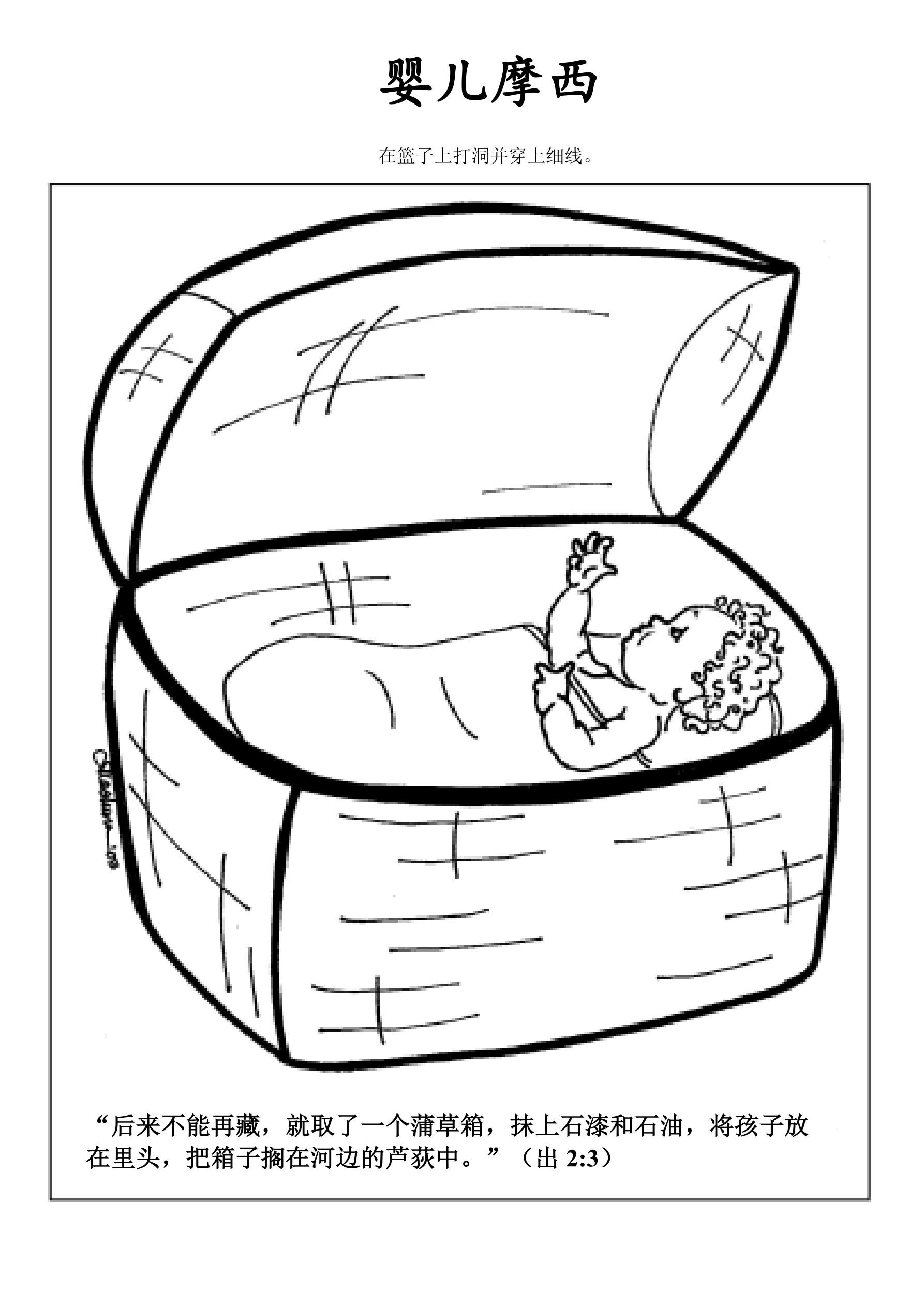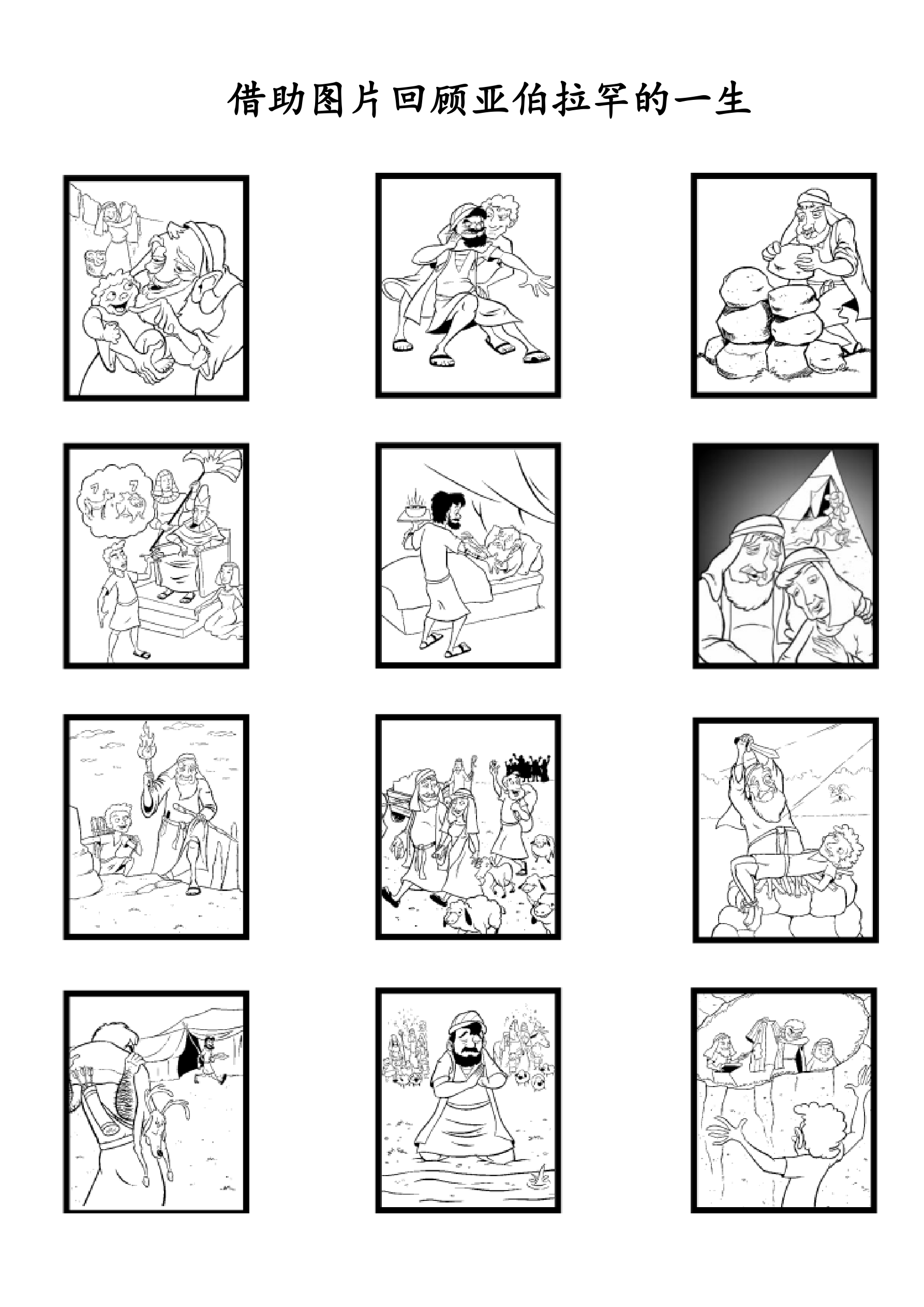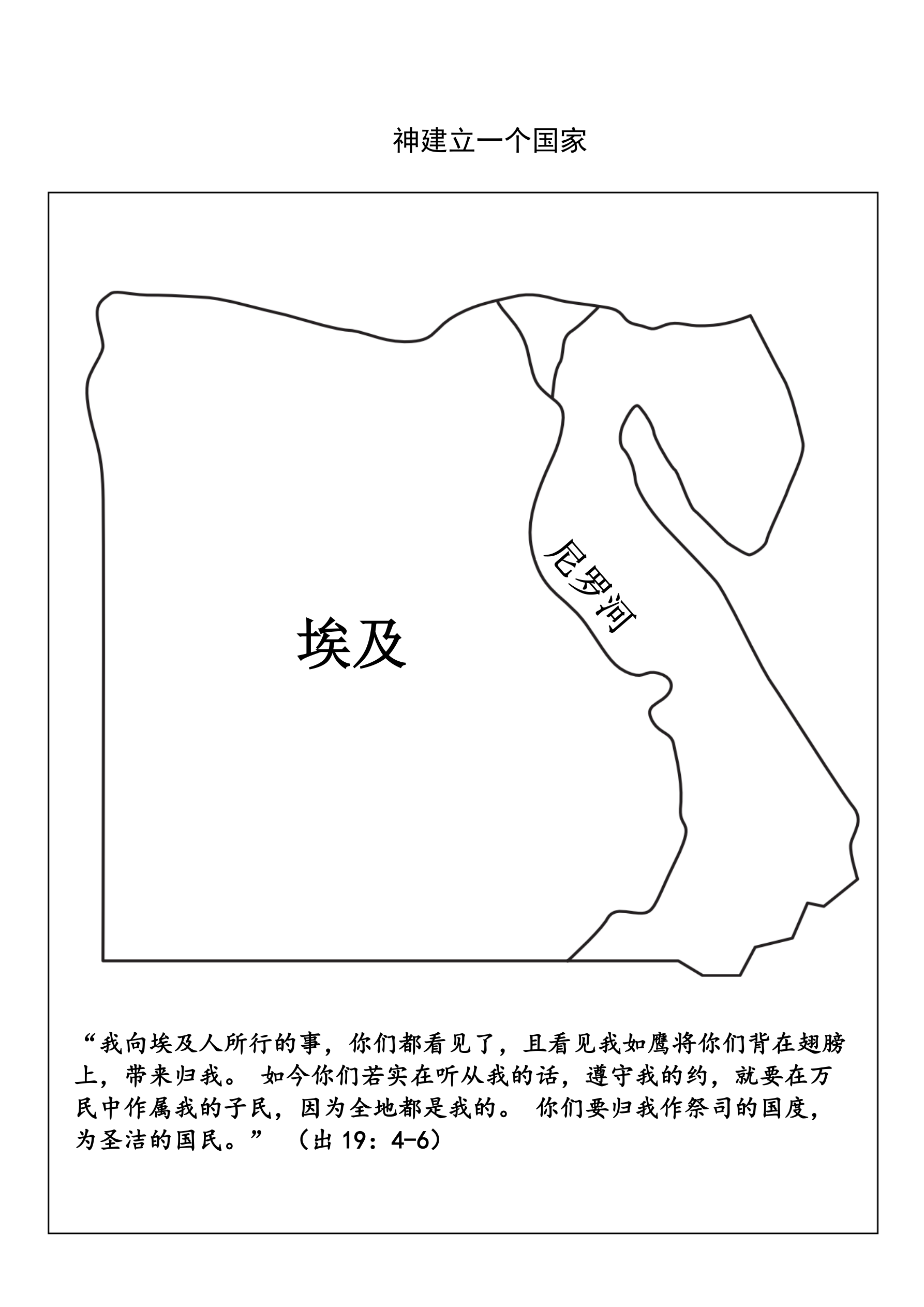 复印本课后面提供的复习图片,让孩子们给图片上色并剪下图片。然后要求孩子们将以色列人在埃及开始奴役生活前发生的事件按顺序排列好,排好之后可以将这些图片粘贴到一张图纸上。