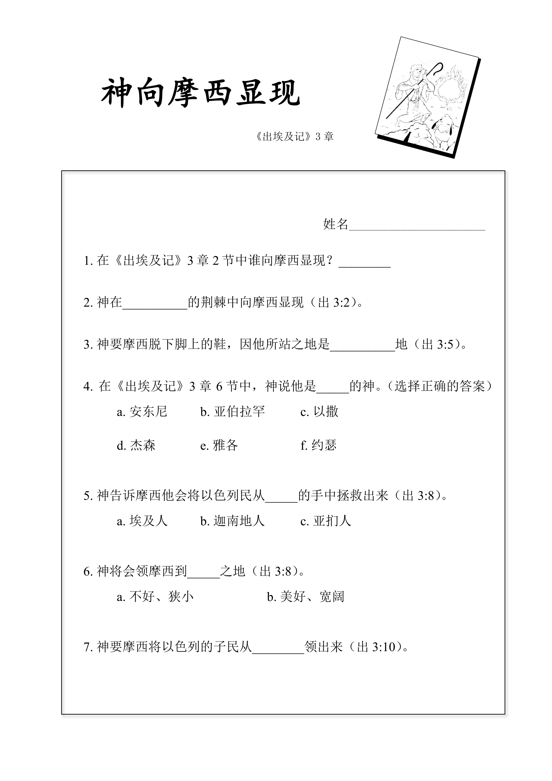 引导问题:神在荆棘中向摩西说什么?