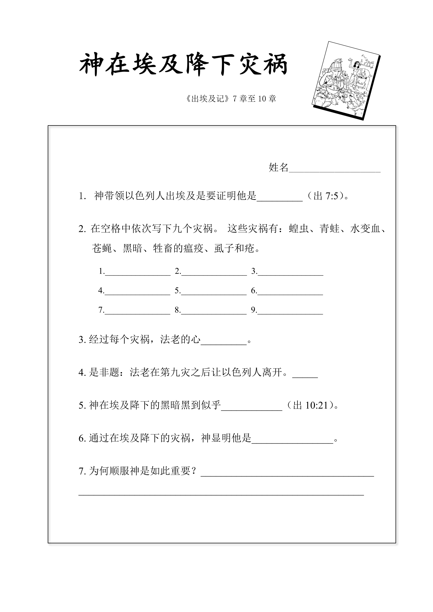 神兴起法老,使他内心刚硬,这样他能透过灾难显明他至高的地位。这些灾祸显明神掌控一切受造,也比所有人妄想出的神灵更有能力。以色列人必须向子女教导他们所服侍的这位神有怎样的能力。埃及之灾能够常常提醒我们这位独一真神的全能。