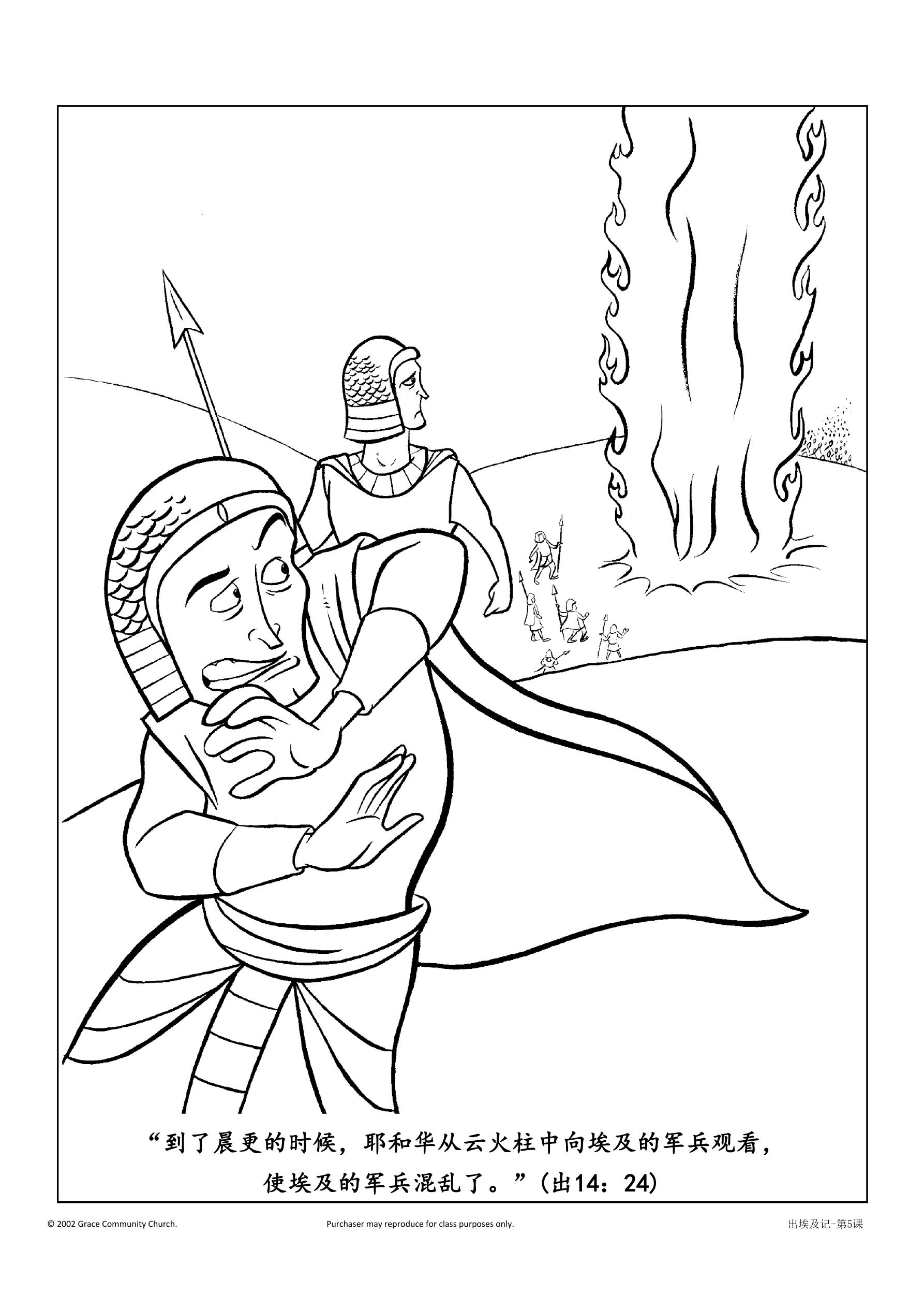 回答:他将云柱火柱放在埃及人和以色列人当中。