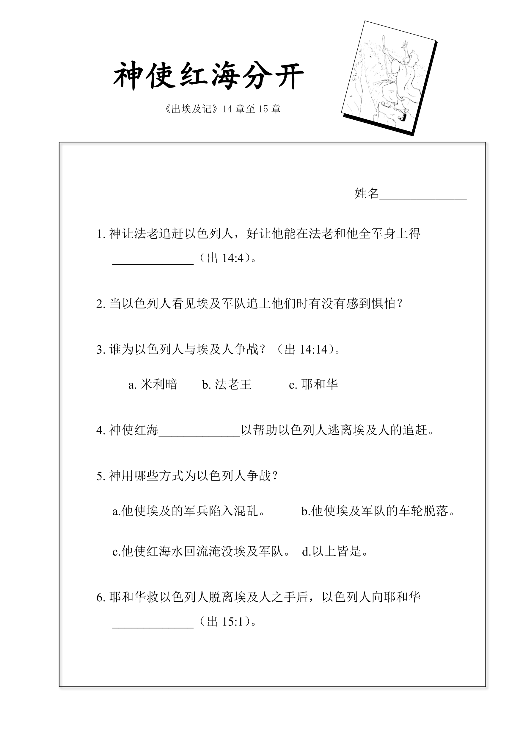 阅读《出埃及记》第14章到第15章。