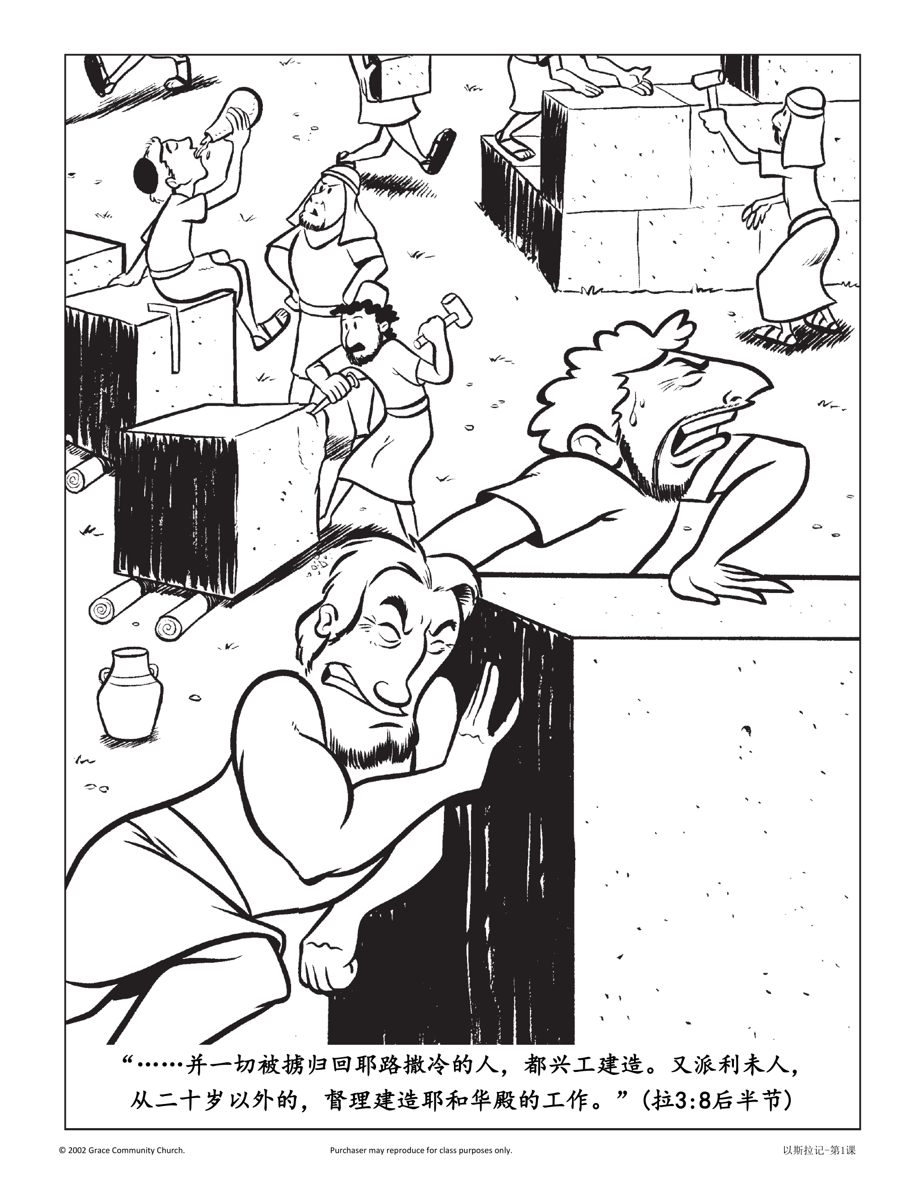 人们赞美庆祝根基立定,在主面前表达爱主之心,这场面十分壮观。“祭司皆穿礼服吹号,亚萨的子孙利未人敲钹,照以色列王大卫所定的例,都站着赞美耶和华”(拉3:10)。他们感谢主并唱道:“他本为善,他向以色列人永发慈爱”(拉3:11)。尽管有很多人因着主的慈爱欢呼喜悦,但也有很多依然记得所罗门旧殿的老年人,因为过去曾失去的而哭号(拉3:11-13)。以色列民恢复了这地,但是他们的罪留下了羞耻的伤疤。虽然修建圣殿仅仅是一个开始,但是人们能够因神的慈爱而敬拜他了。