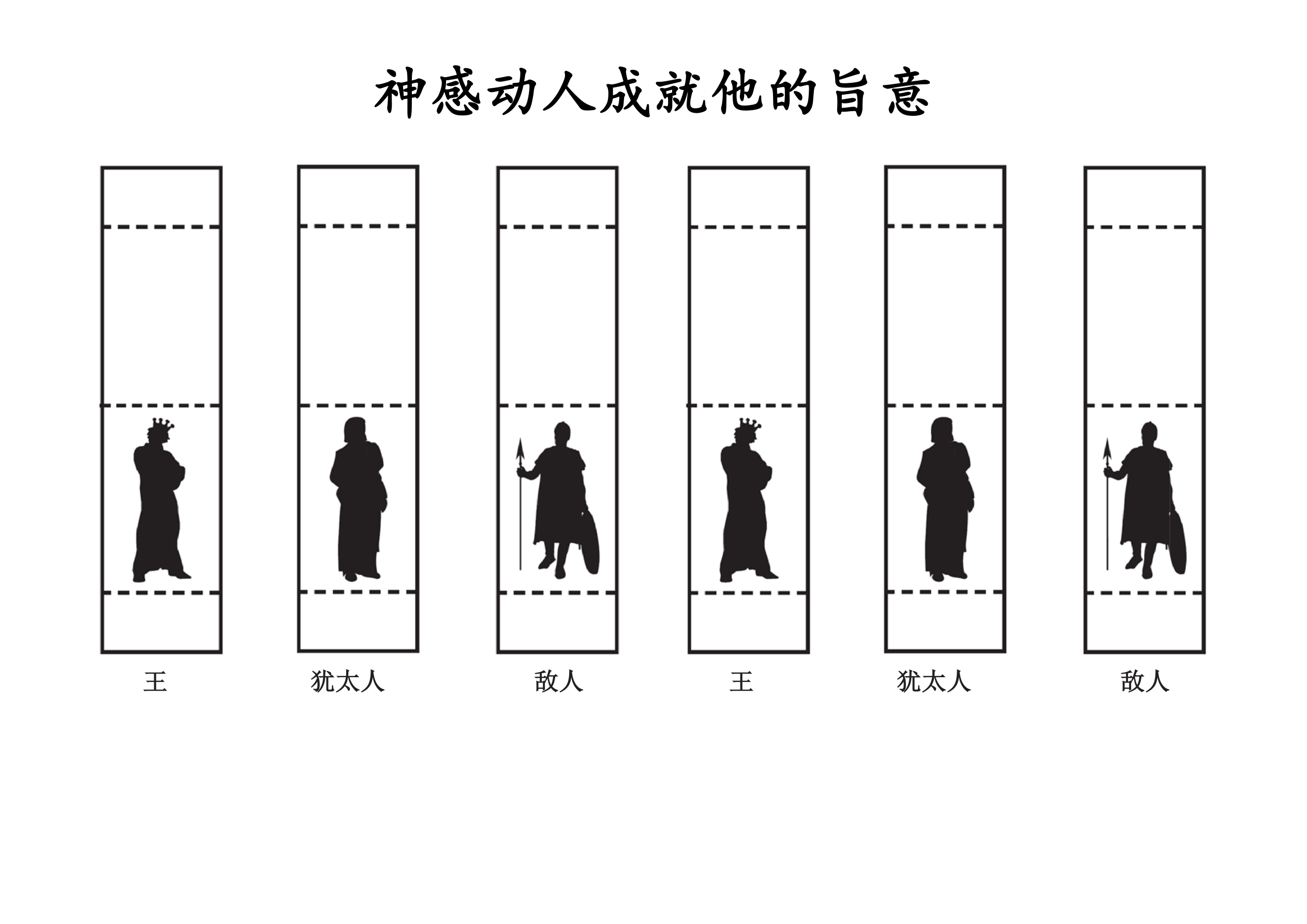 神的仆人并不是只有以色列人。无论大流士王自己是否意识到这一点,他凭着对此事的回应也在服侍神。大流士王不仅找到了对居鲁士王当时降旨的记录(拉6:2-5),而且他还下令让总督远离圣殿,“不要拦阻神殿的工作”(拉6:7)。大流士王所做的甚至比居鲁士王还多,他下令从河西的款项中“拨取贡银作他们的经费”,并且“他们与天上的神献燔祭所需用的公牛犊、公绵羊、绵羊羔,并所用的麦子、盐、酒、油,都要每日供给他们”。大流士王甚至宣称任何干涉建造圣殿的人都要判处死刑,并愿以色列的神灭绝一切拦阻圣殿的人(拉6:11-12)。主再一次感动一位王的心来完成他的计划。
