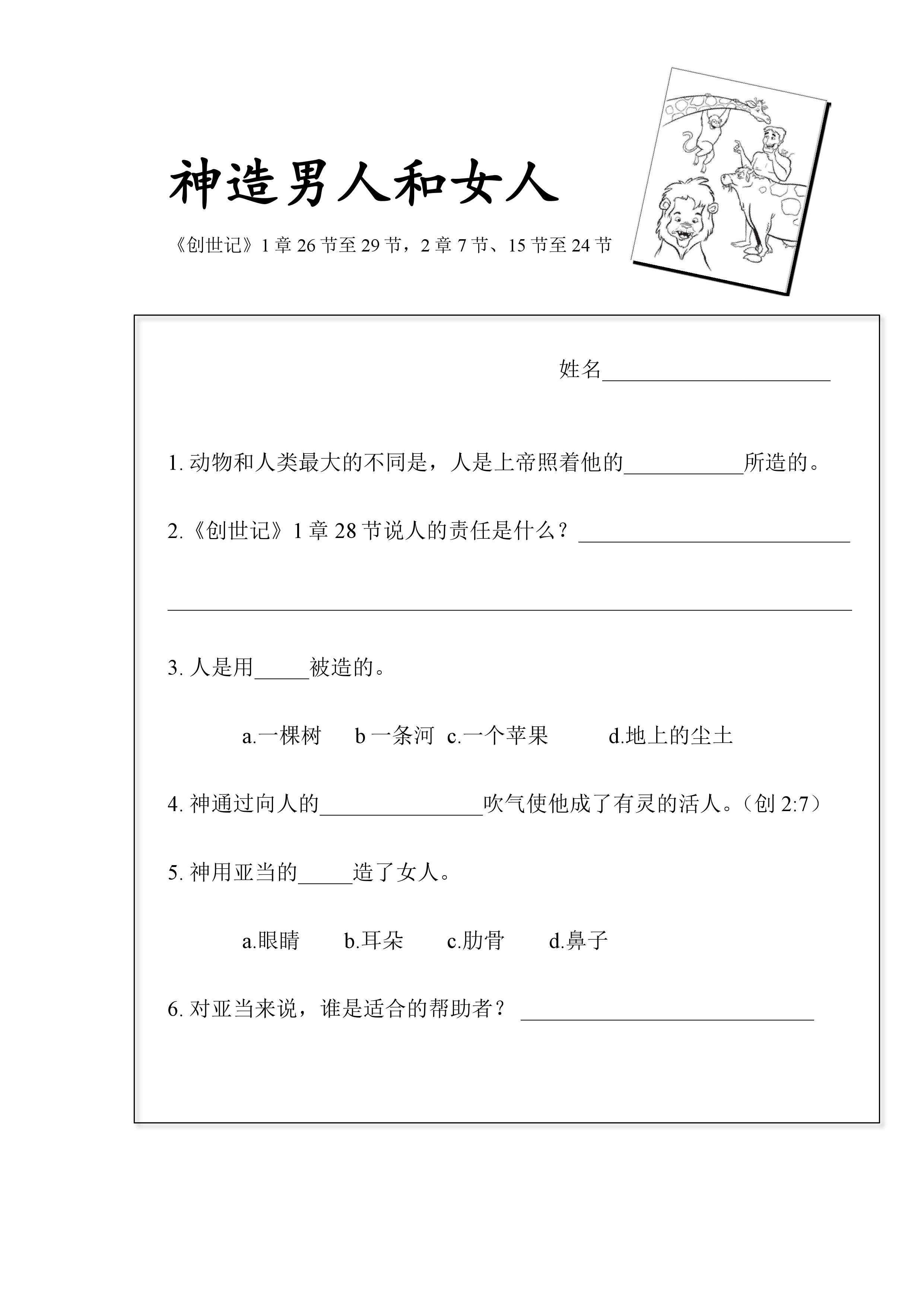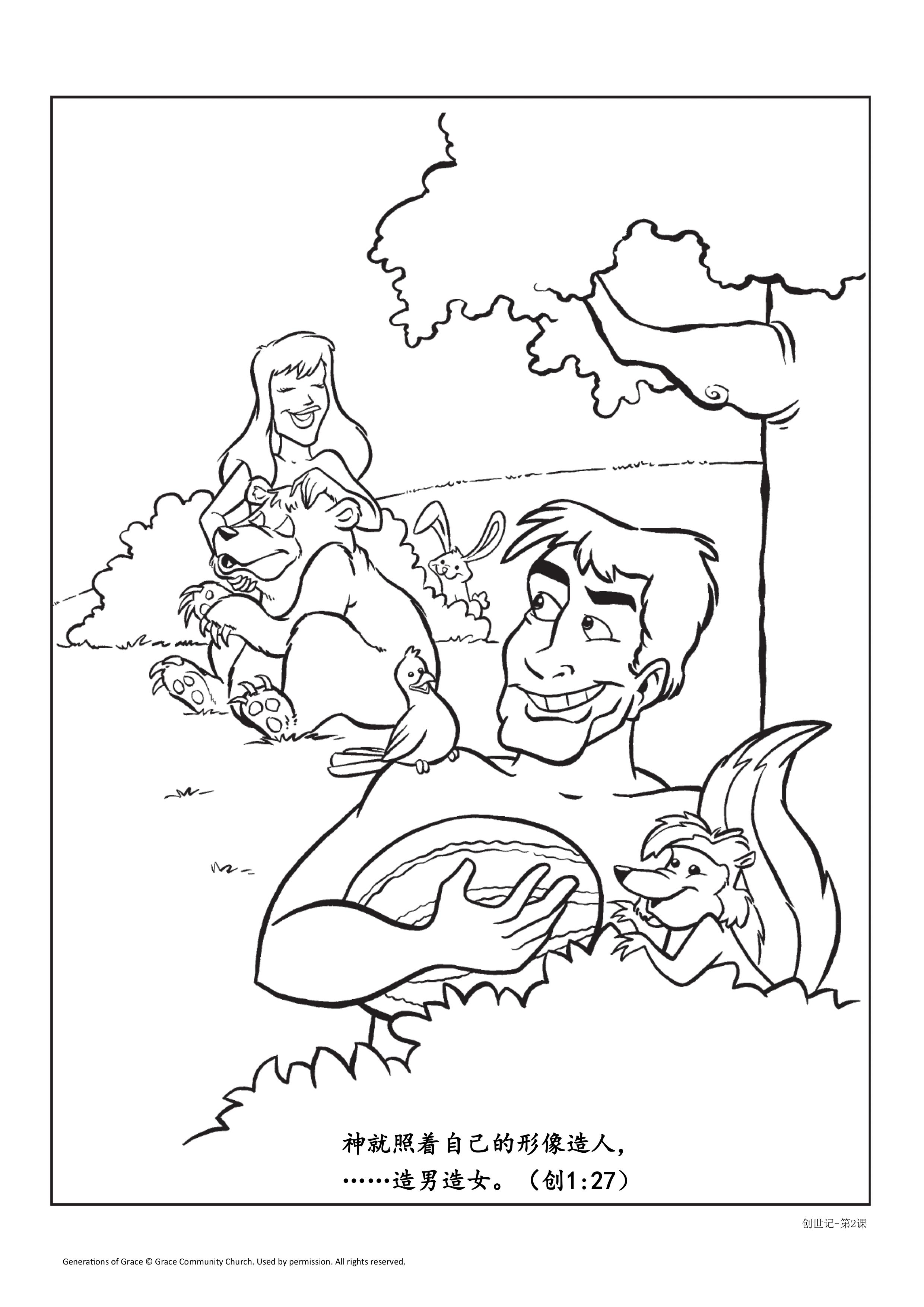 引导问题:为了给亚当找“一个配偶来帮助他”,神先将什么带给亚当?
