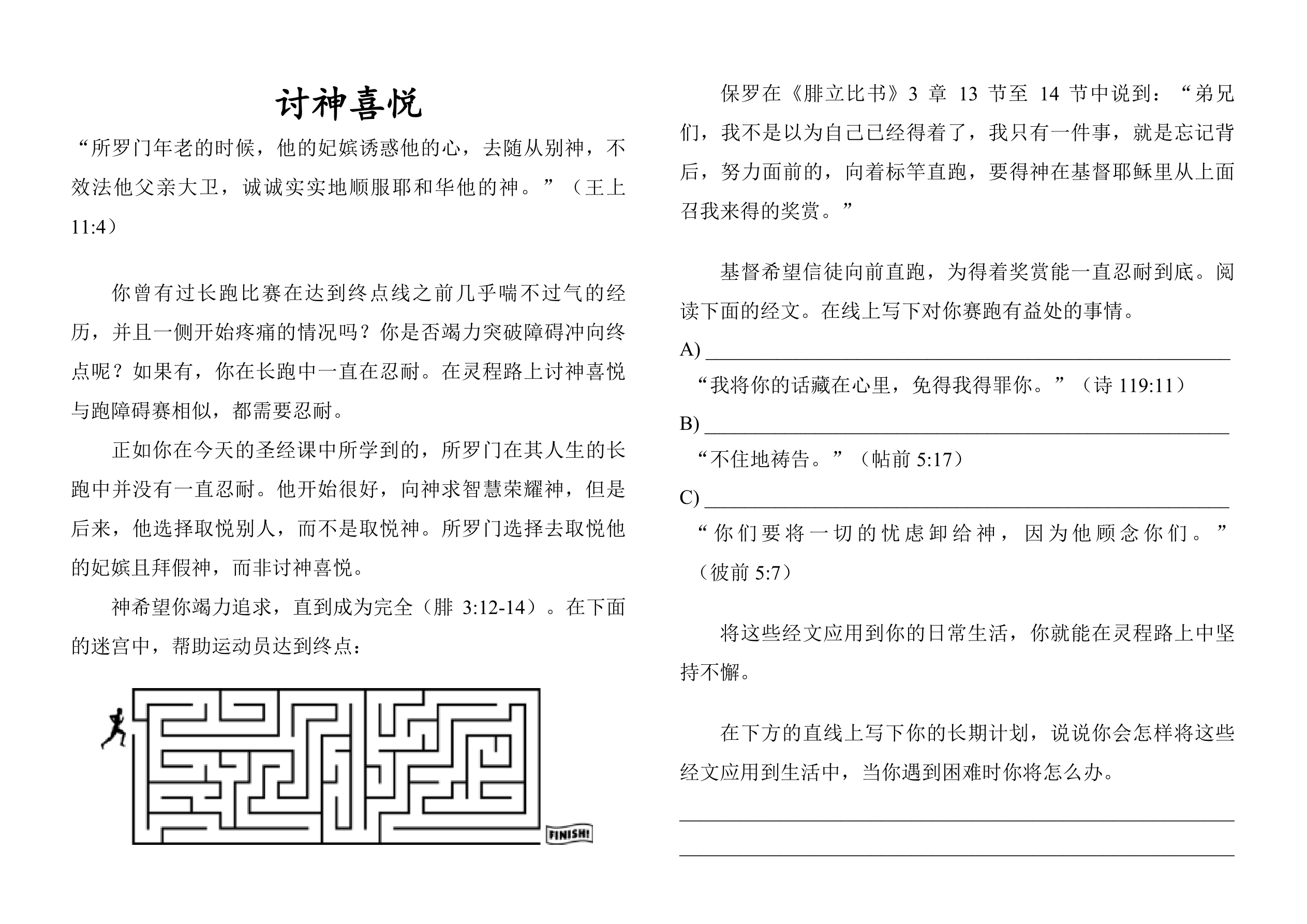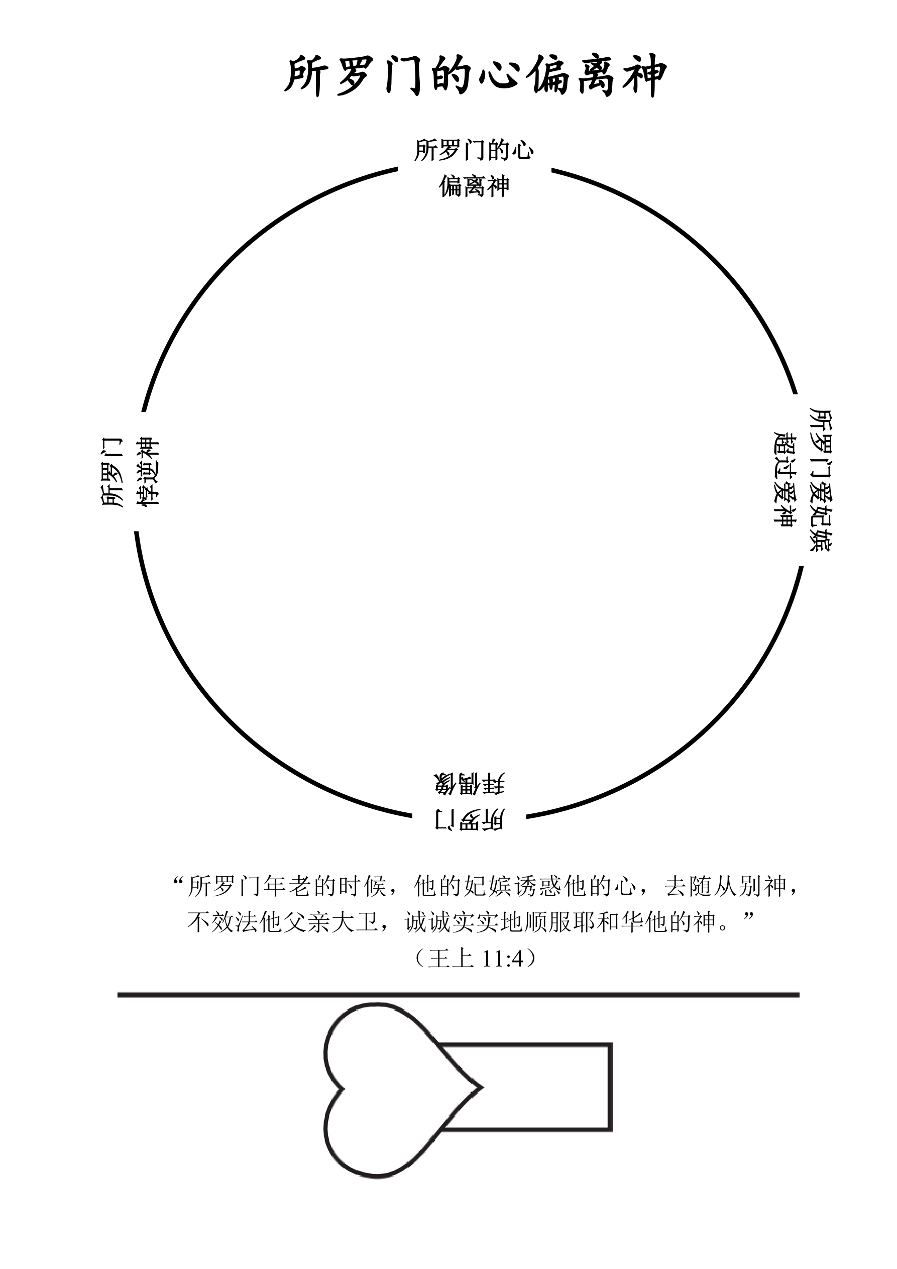 课堂说明:把圆圈和心形指针剪下来。把心形指针用无头钉在圆圈中心处。旋转心形指针来读出所罗门的心是如何偏离神的。