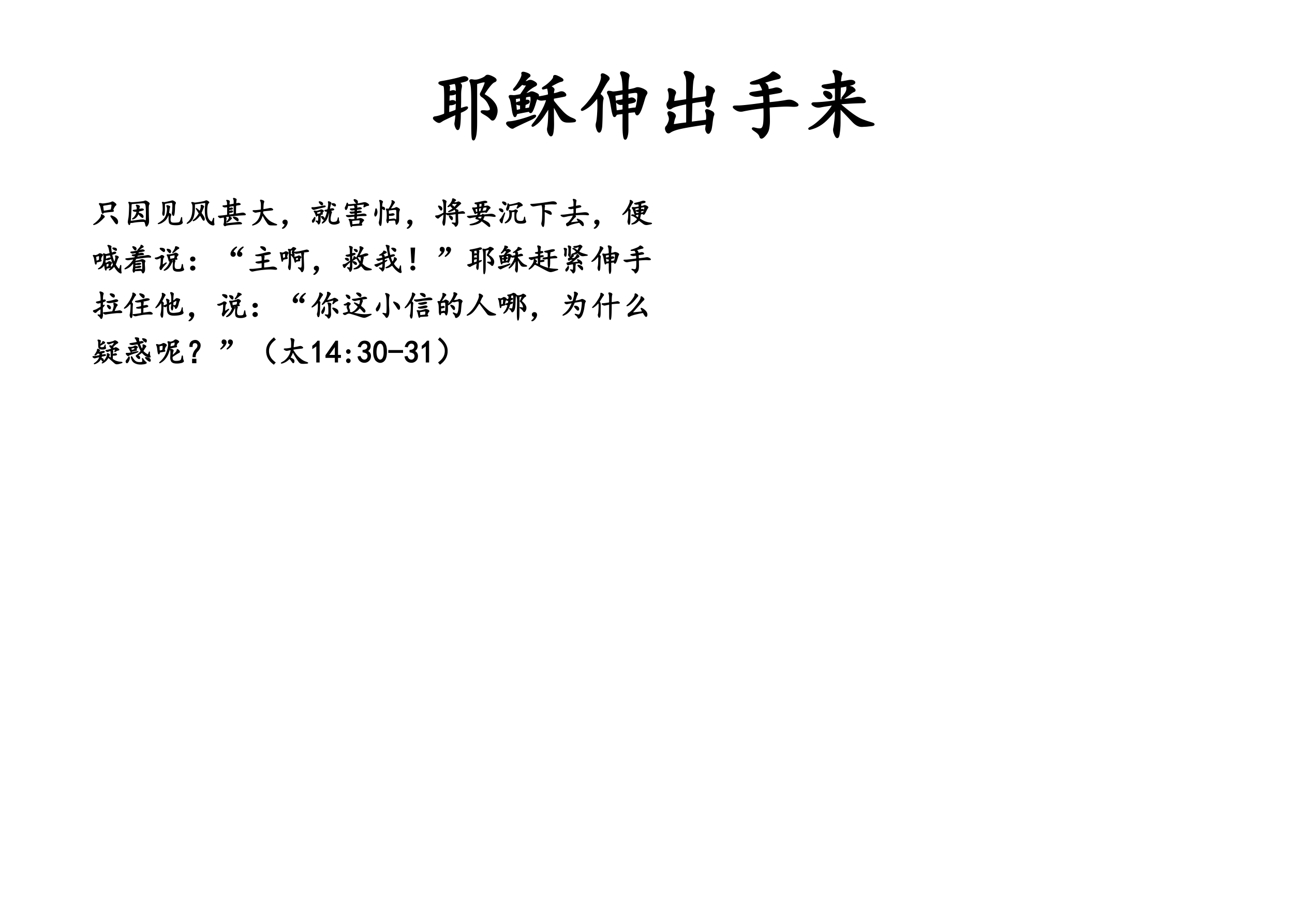 “耶稣伸出手来”