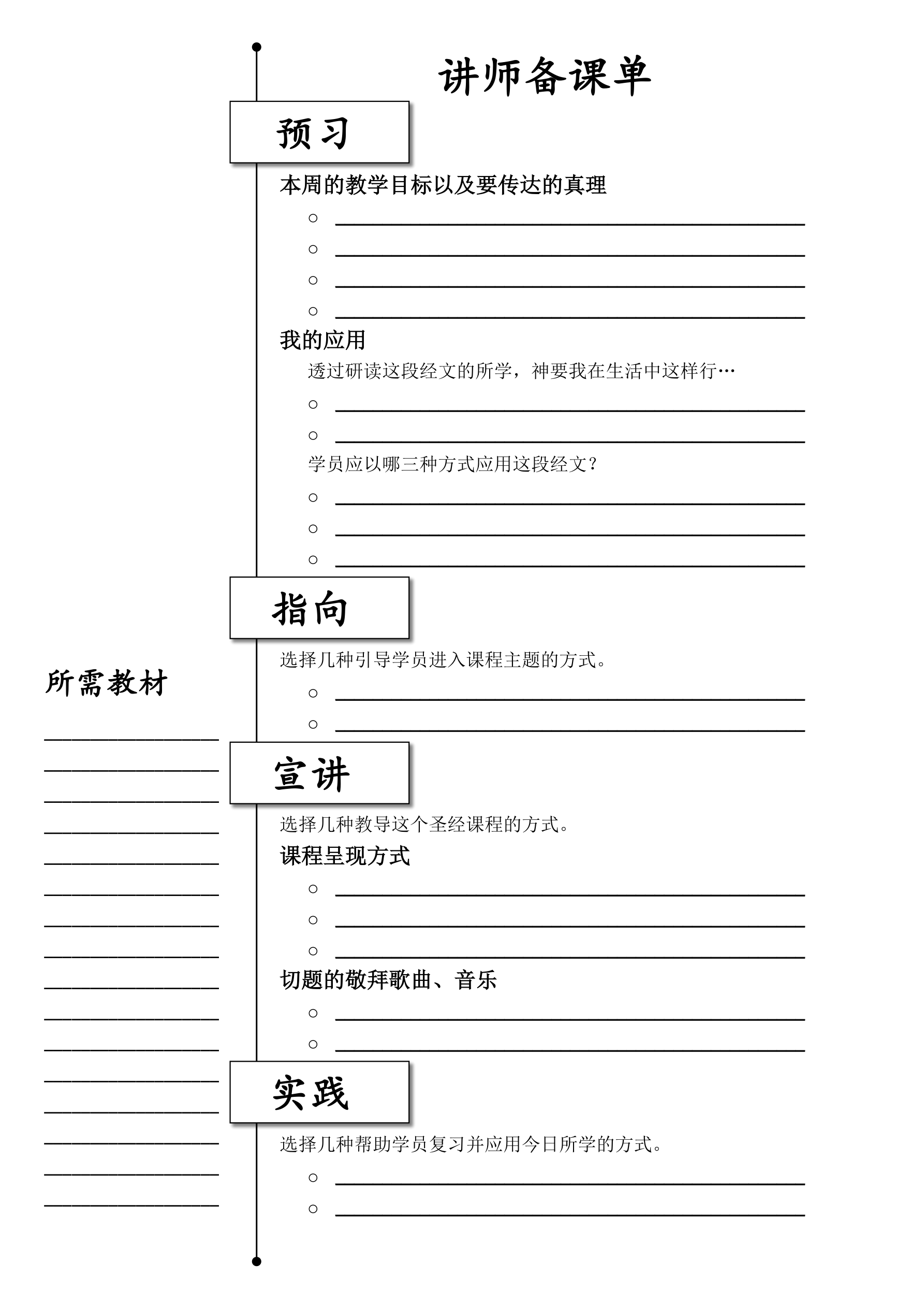 从本节中选取一些好的方法来复习并应用圣经课程中所含的真理。
