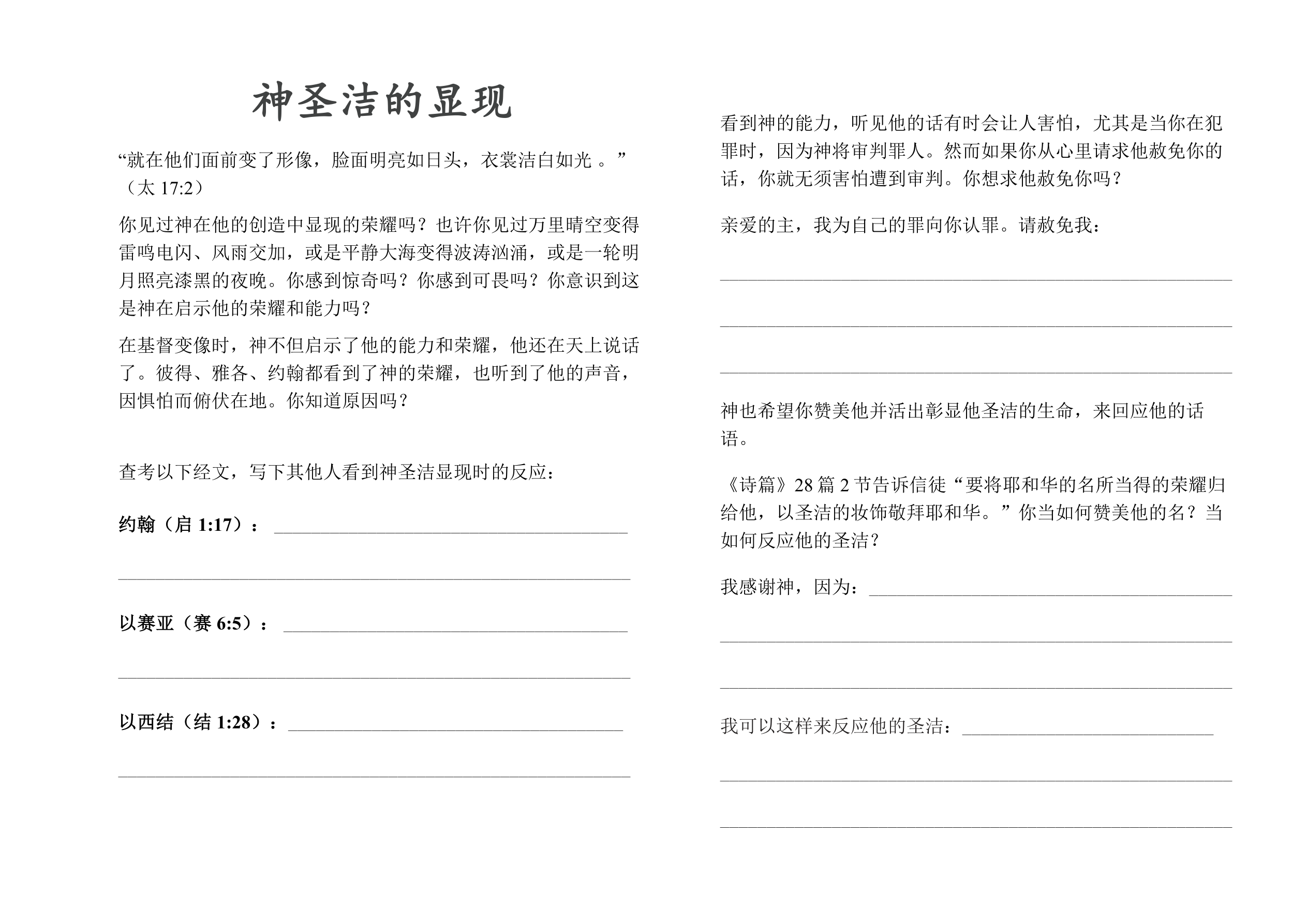 从本节中选取一些好的方法来复习并应用圣经课程中所含的真理。