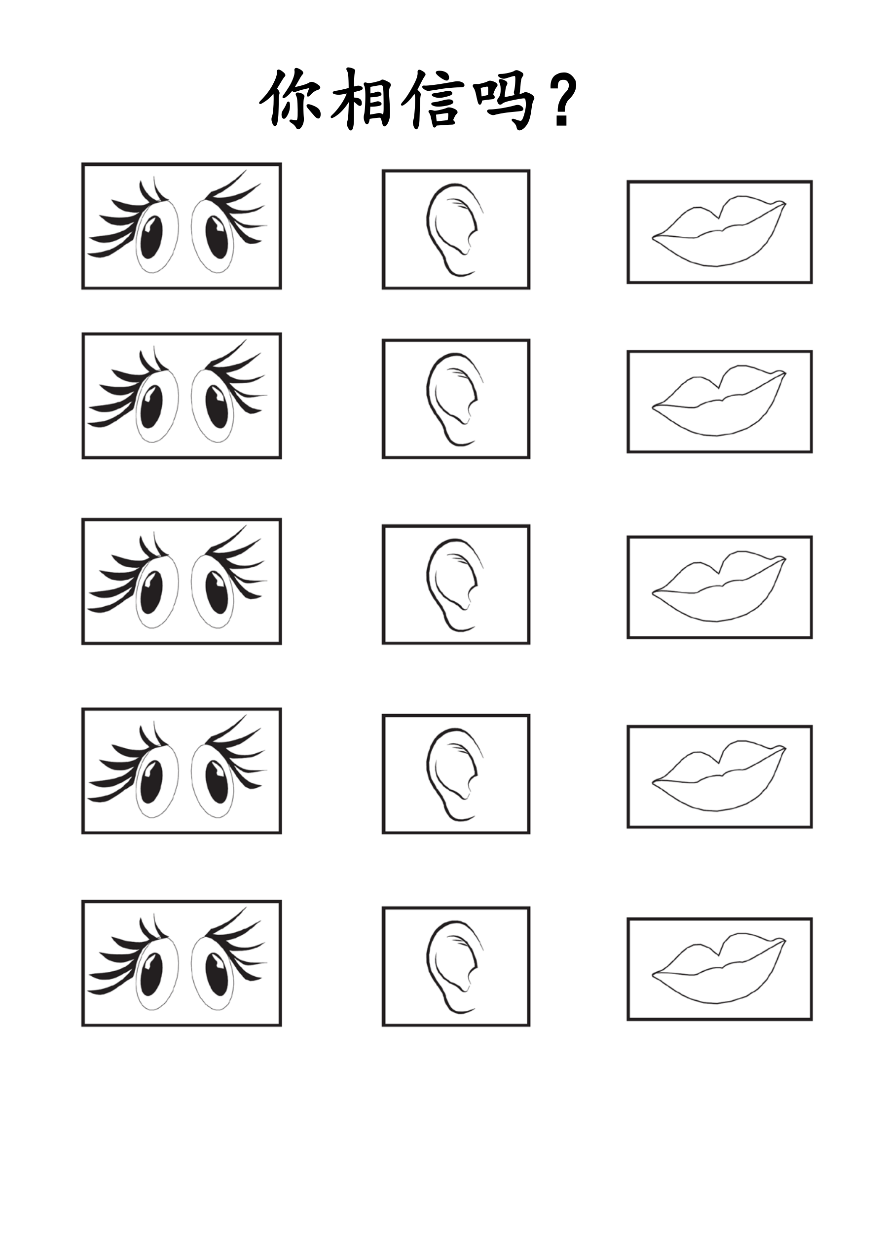 所需材料:“你相信吗?”手工页复印件、剪刀、胶水和蜡笔。