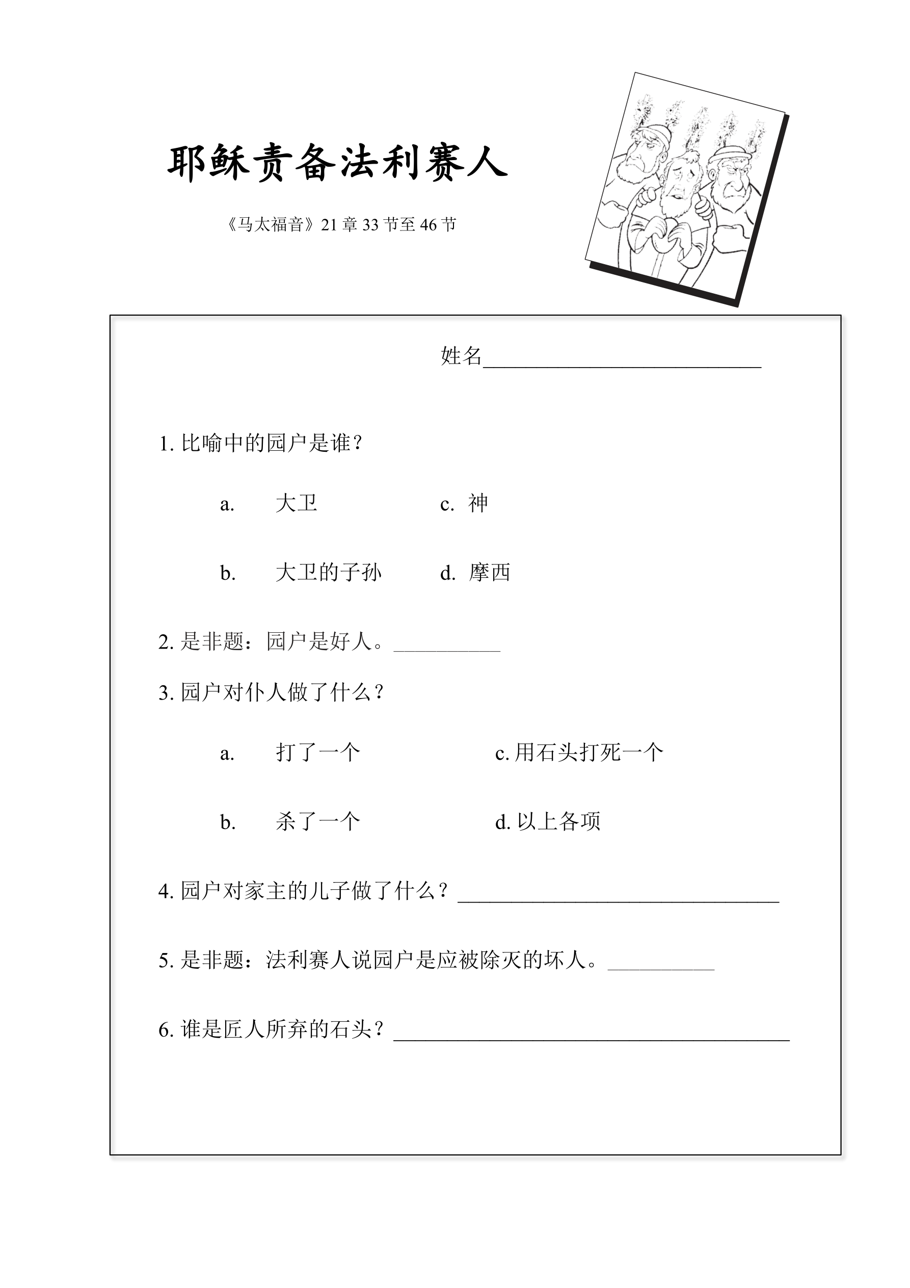 回答:在耶稣问园主将怎样处治园户之后,祭司长和法利赛人为他完成了比喻。他们知道园户是“恶人”,理应除灭,也明白家主将会把葡萄园转给忠心结果子的人。