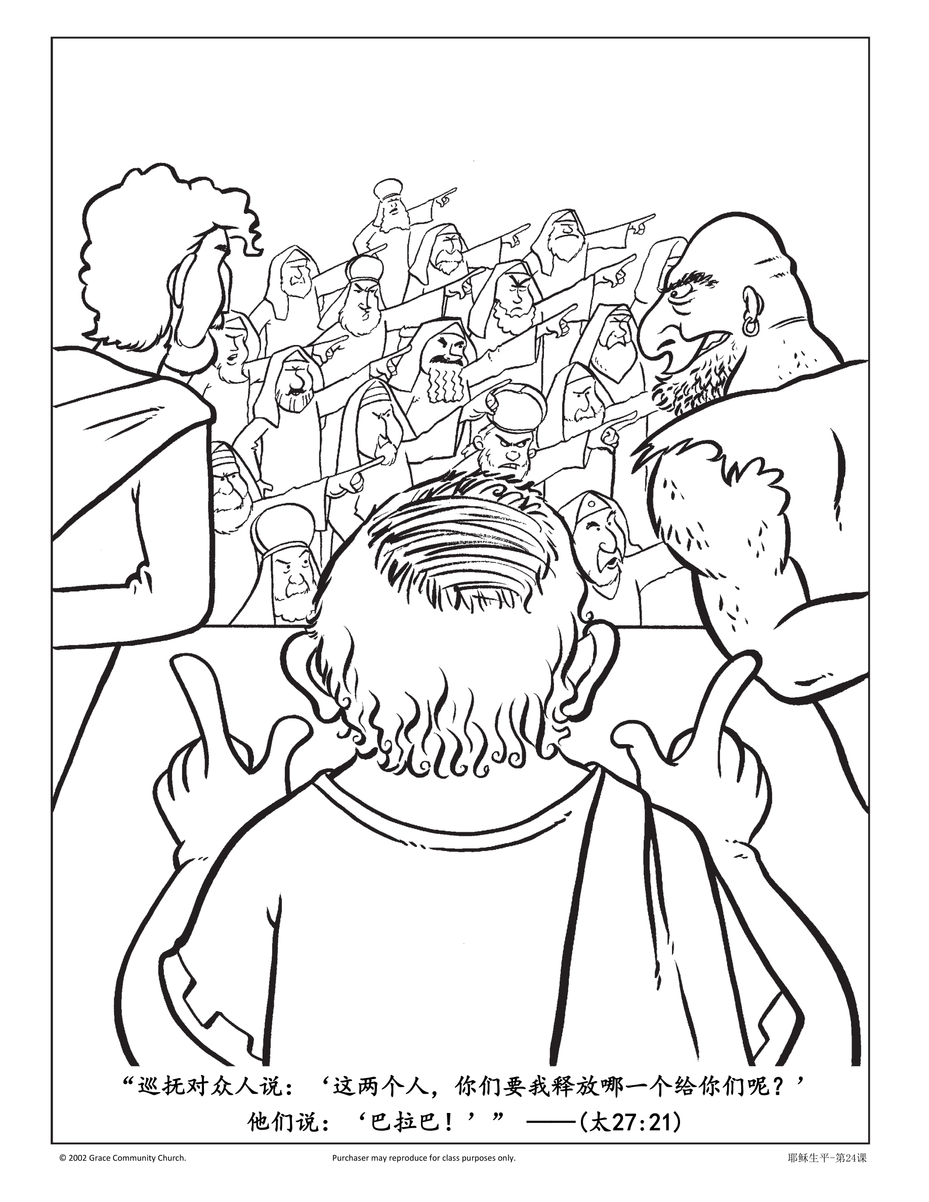 在众人的要求下,彼拉多释放了巴拉巴,把耶稣带走鞭打了,并且被送去钉十字架。在人看来,这天夜里和早上所发生的一切事看似超出了神的掌控,好像悖逆神的人看起来是胜利了。但是这一天发生的每一件事都是神完美计划的一部分,为要救人脱离罪和死。即使在这一次不公正的审判中,神在人身上完美的救赎计划也得以实现。