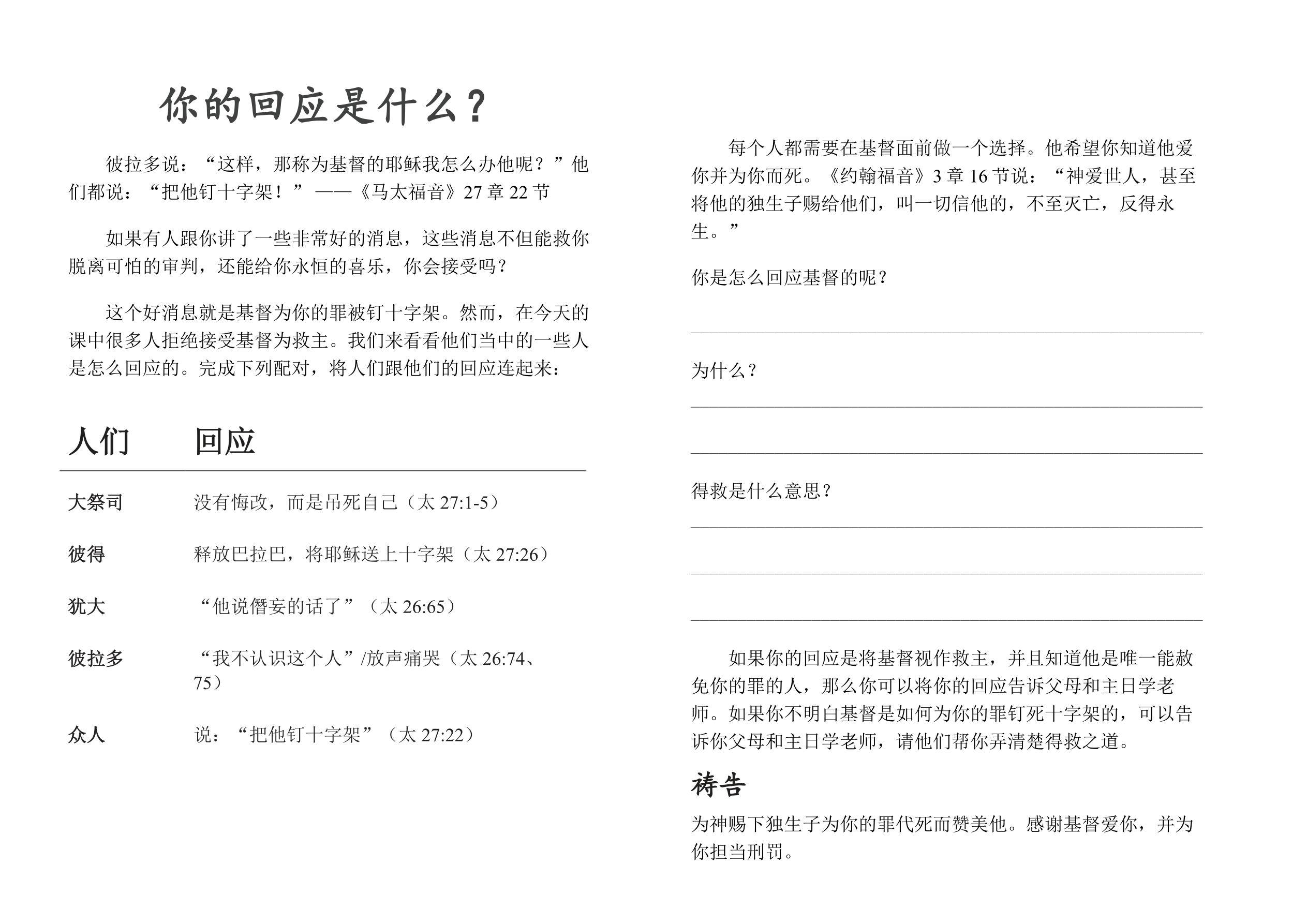 从本节中选取一些好的方法来复习并应用圣经课程中所含的真理。