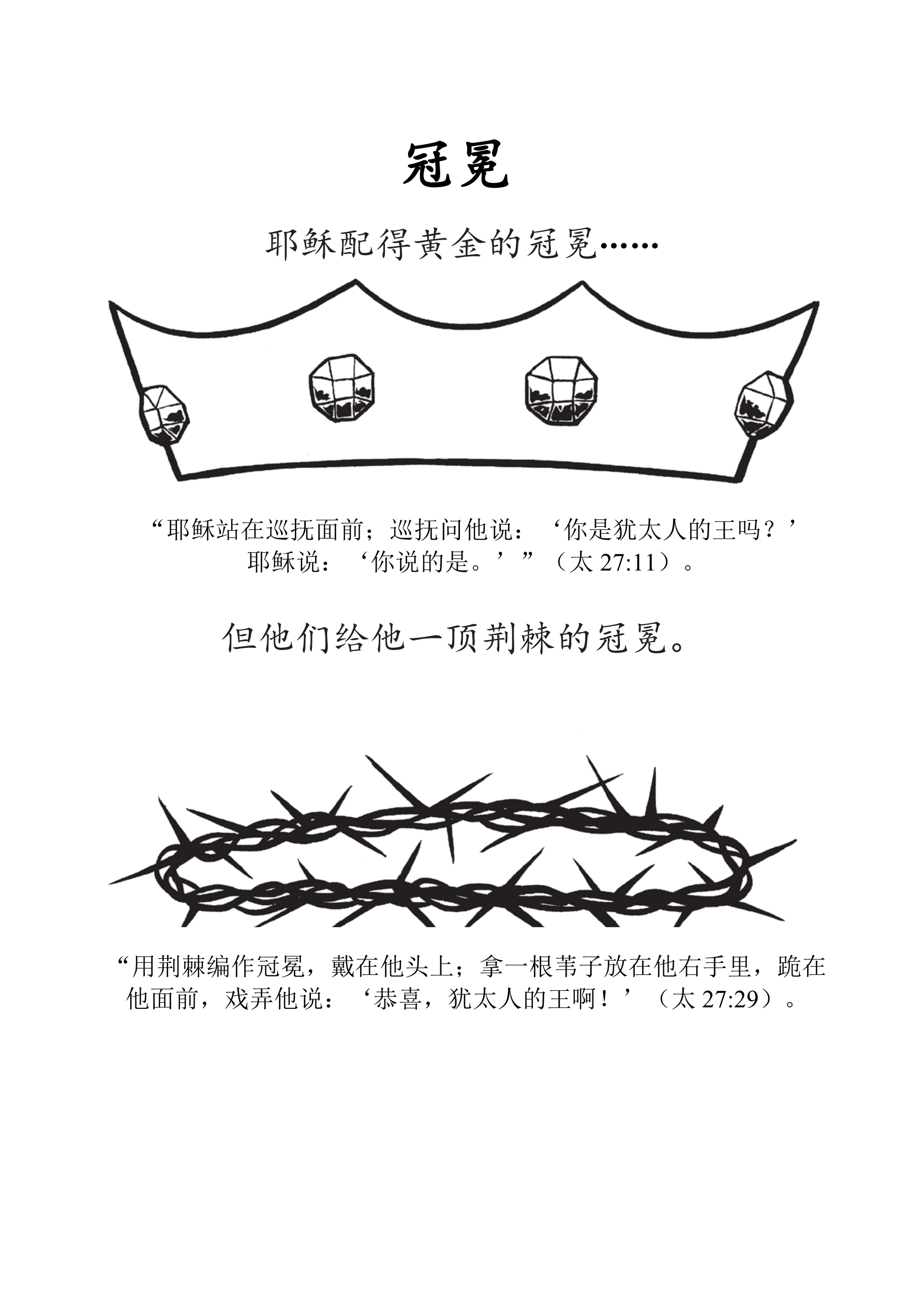 所需材料:“耶稣受审和被弃”手工页复印件、剪刀、胶水和蜡笔。