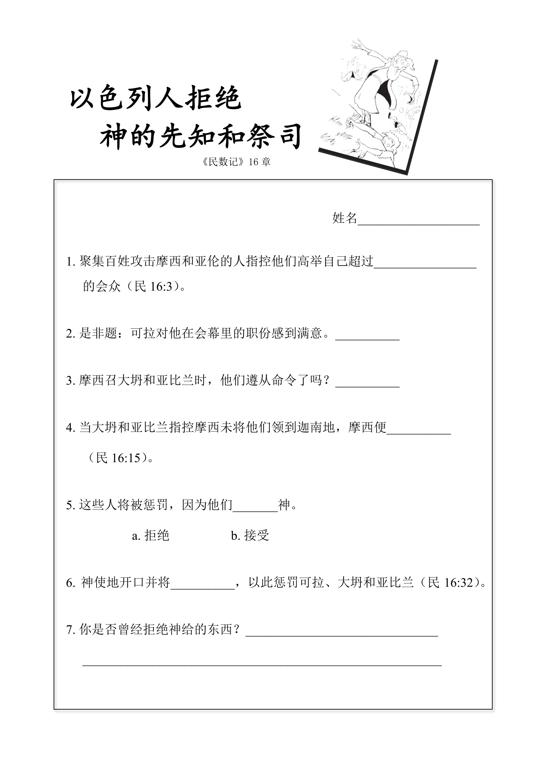 什么是叛变?叛变不仅仅是不服从,也包括拒绝承认带领人的权柄。你曾经反抗过谁吗?在今天的课上,我们会听到关于一群人反抗摩西的领导权时发生的事。