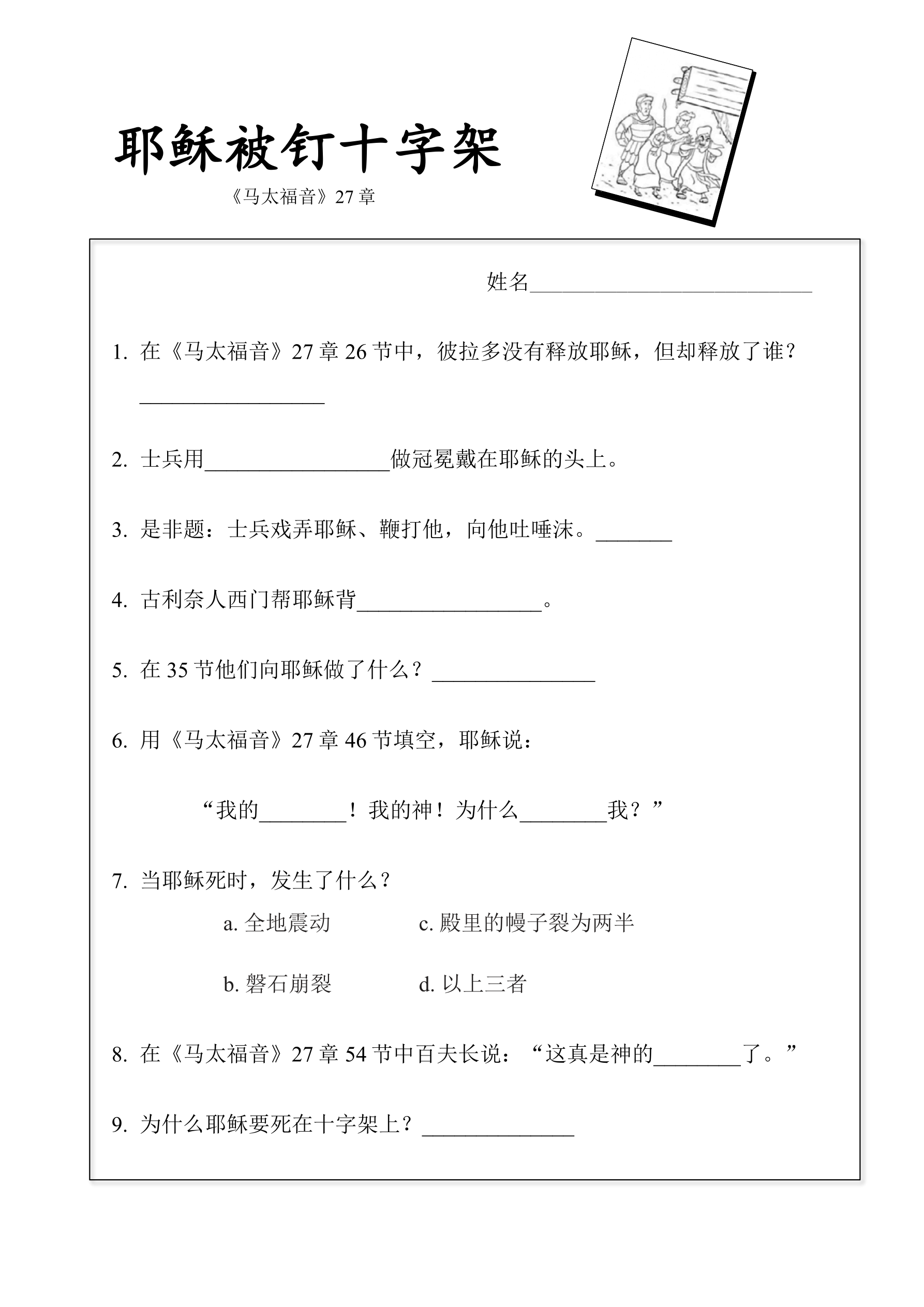 课堂说明:让学生将报纸剪成条。然后,用纸条在图画用纸上做一个十字架。报纸上的油墨可能会弄脏手,在手工结束时发纸巾擦手。