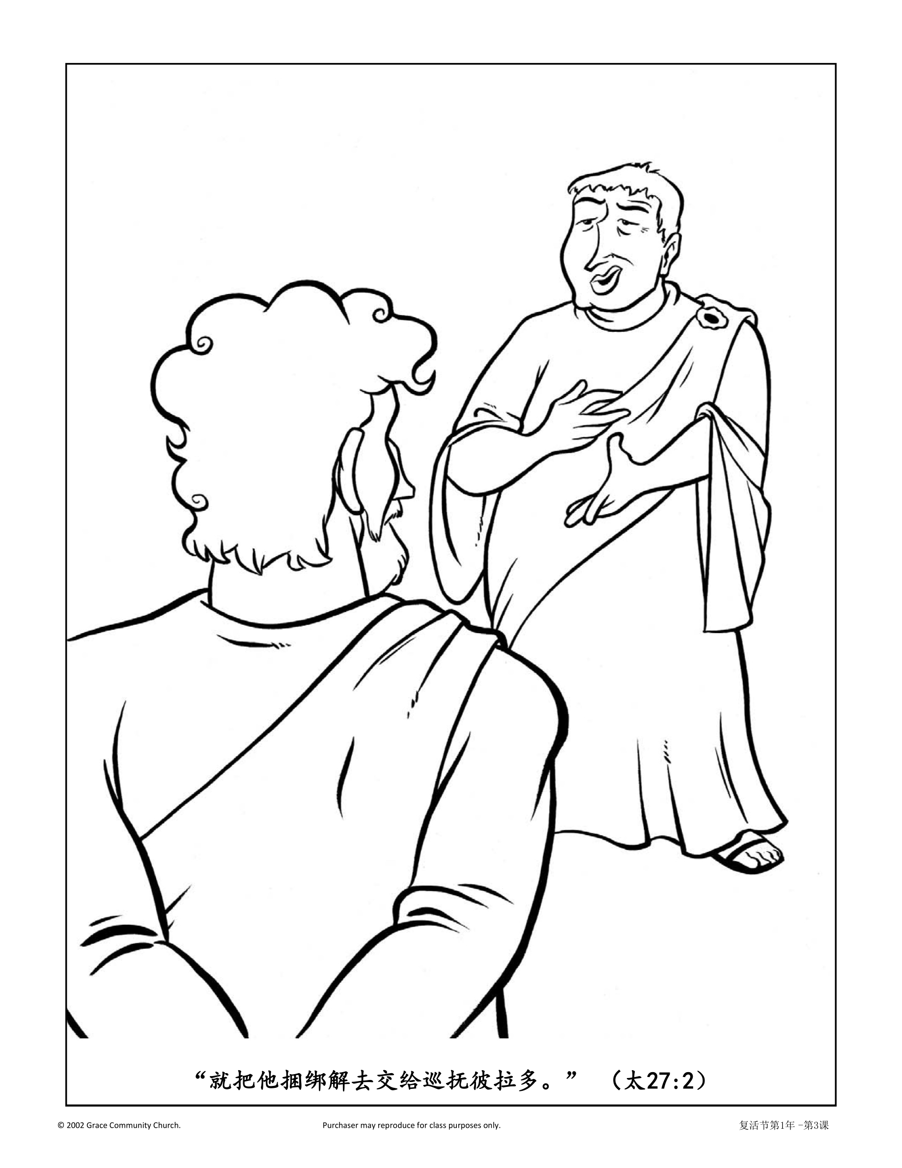 上两次课中我们看到不同的人犯罪得罪耶稣。问孩子们能否记得在之前的课中圣经中的人物犯了哪些罪。例子包括圣殿里兑换钱币的人、反对耶稣的祭司和法利赛人、出卖耶稣的犹大、否认耶稣的彼得以及不跟耶稣一起祷告反倒睡着的门徒。问孩子们是否需要惩罚这些罪。今天,我们将学到耶稣为担当罪的刑罚而受死。