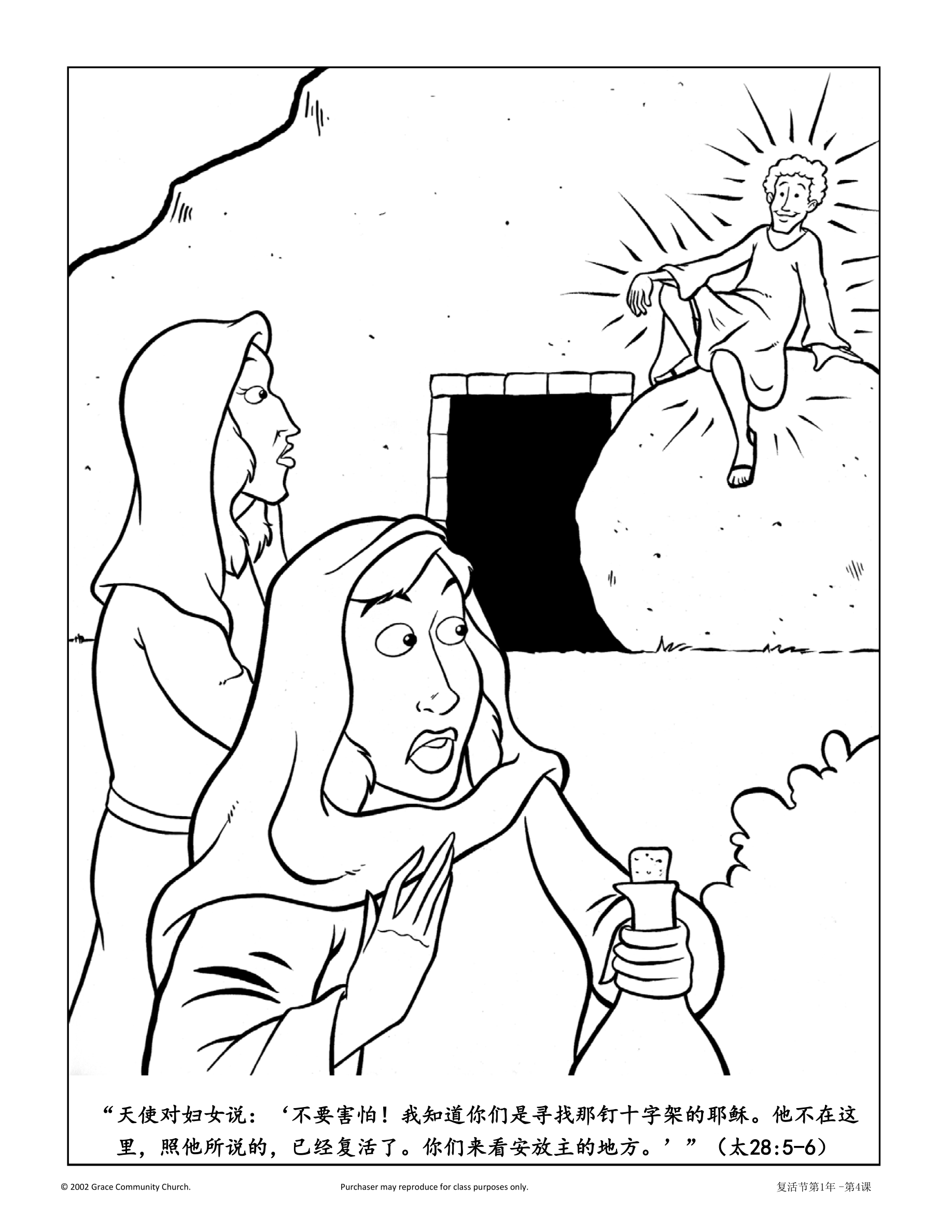 你为耶稣的死里复活感到开心吗?起码我知道我很开心!现在耶稣已经活了,他坐在天上。他是为我们的罪偿付代价的复活之主。让我们一同像今天课文中的妇女一样学习敬拜耶稣。这些妇女看见耶稣复活后欣喜异常,因为她们知道他是主。你知道耶稣是主吗?你应当知道他是。