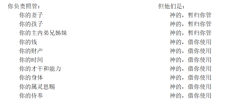 神已经借着他的话语清楚地告诉我们,我们只不过是这些事物的管家而已。是的,他赐给我们这些,让我们去享受,但只有当我们用这些事物来成就他的旨意时,才能得到享受。他赐给我们这些主要是为了让我们荣神益人,而不是为了自己的利益(林前10:31;加5:13)。一个自私自利的人很难忠心。对于神所赐予的一切,你是如何看待的?