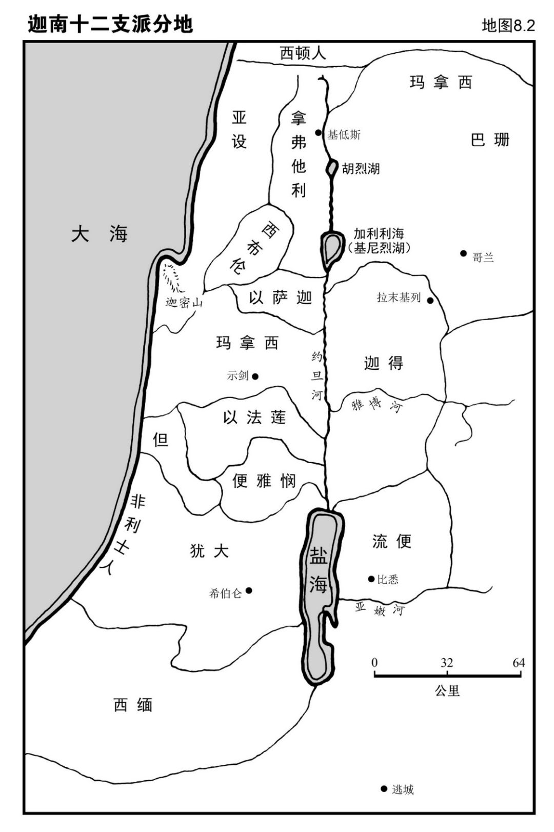 地图8.2为约书亚于各场重要战役后的分地。