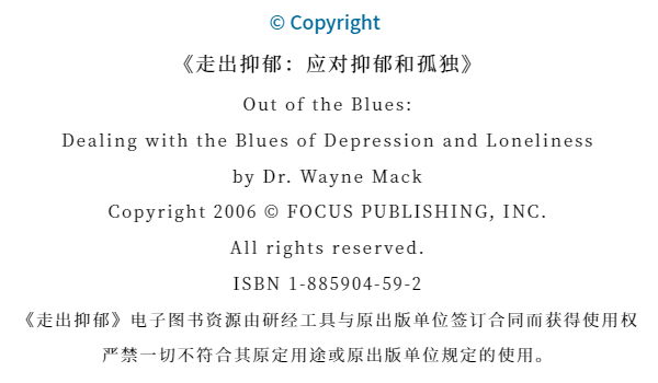 (查看索引并阅读罗伯特博士在《基督徒辅导员医学案头参考》[The Christian Counselor’s Medical Desk Reference]一书中所写的抑郁情绪的身体方面。)[1]