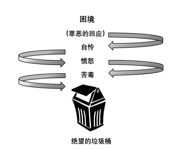 以下的图表为我们描述了这种抑郁的发展过程。每个图表描述了这种抑郁如何因对困境有不符合圣经的回应方式而不断恶化: