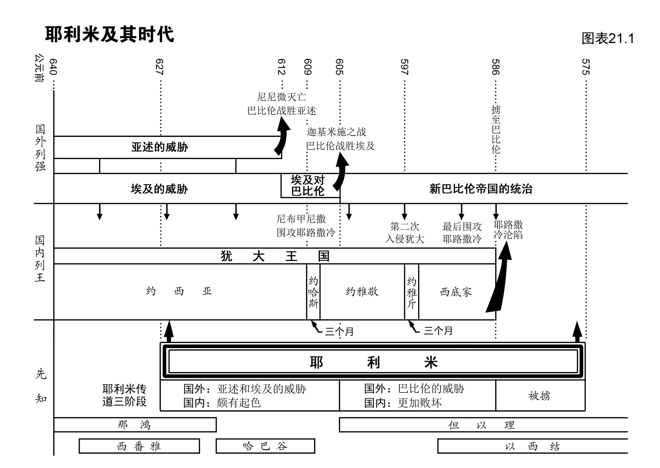 以赛亚死后约六十年,神呼召一位年纪约二十一岁的青年耶利米担任一项既困难而又紧急的任务——在民族大难前夕宣讲神的道。 一、读前准备 ① 复习“以赛亚书:圣者耶和华荣耀的宝座”中关于旧约先知的概述。参考图