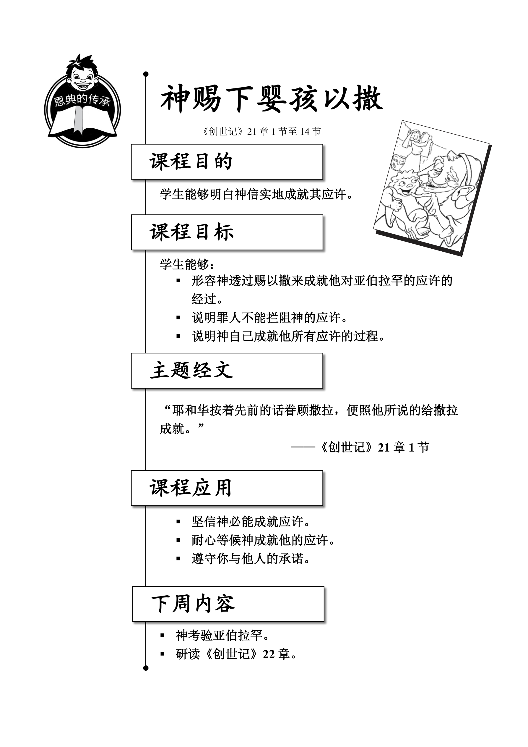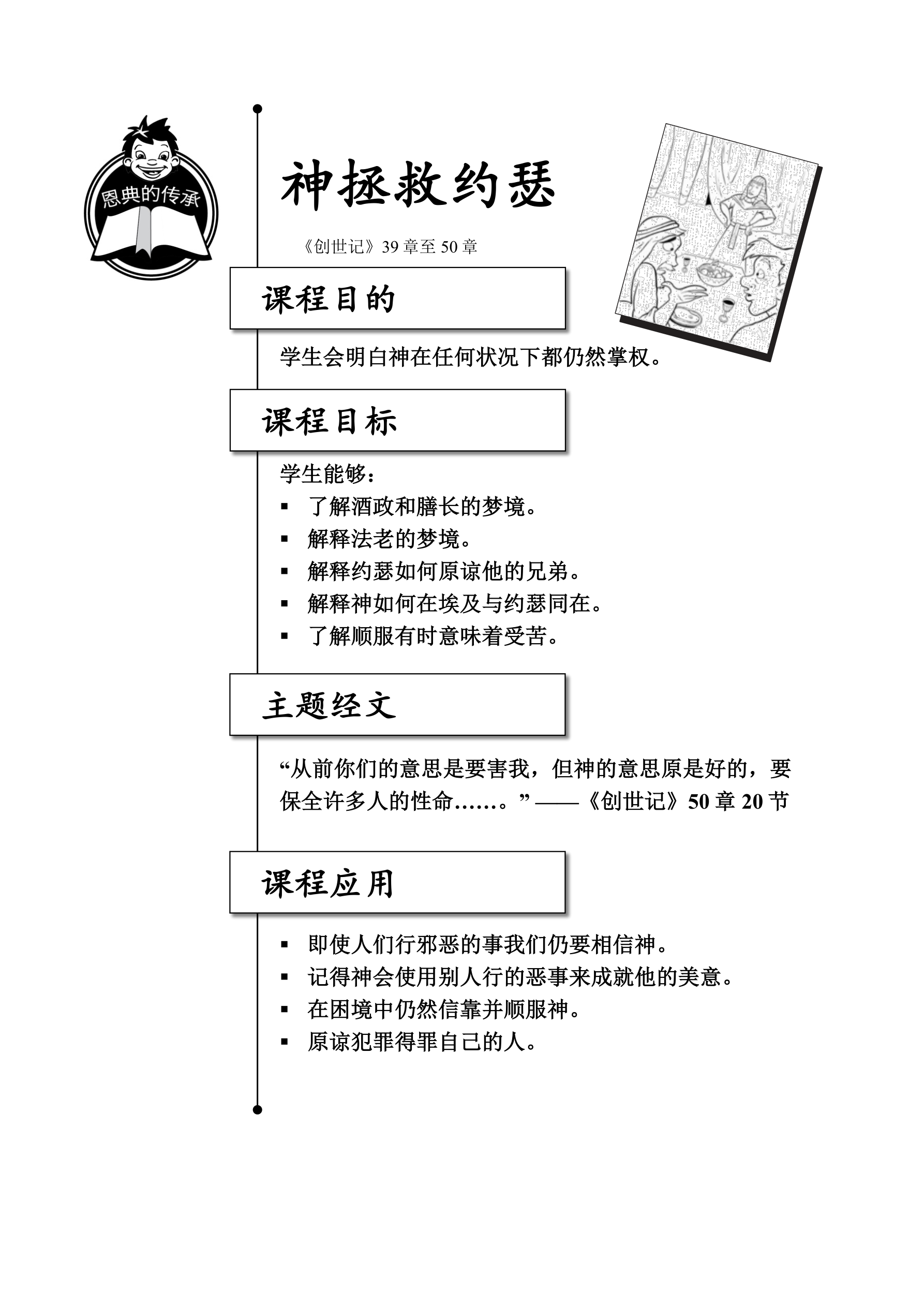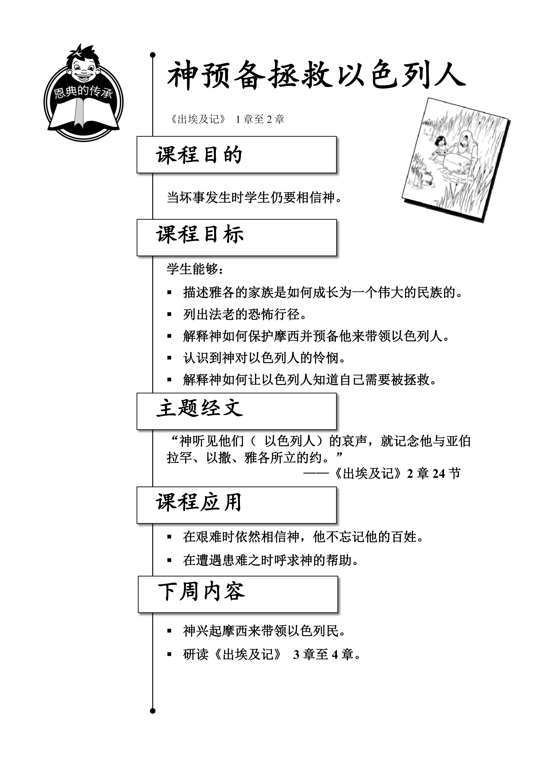 第1课:神预备拯救以色列人 预备真理 “你们要将我这话存在心内,留在意中……也要这样教训你们的儿女……”——《申命记》11章18节至19节 请花时间来准备你的心思意念,按着正意分解真理的道(提后2:1