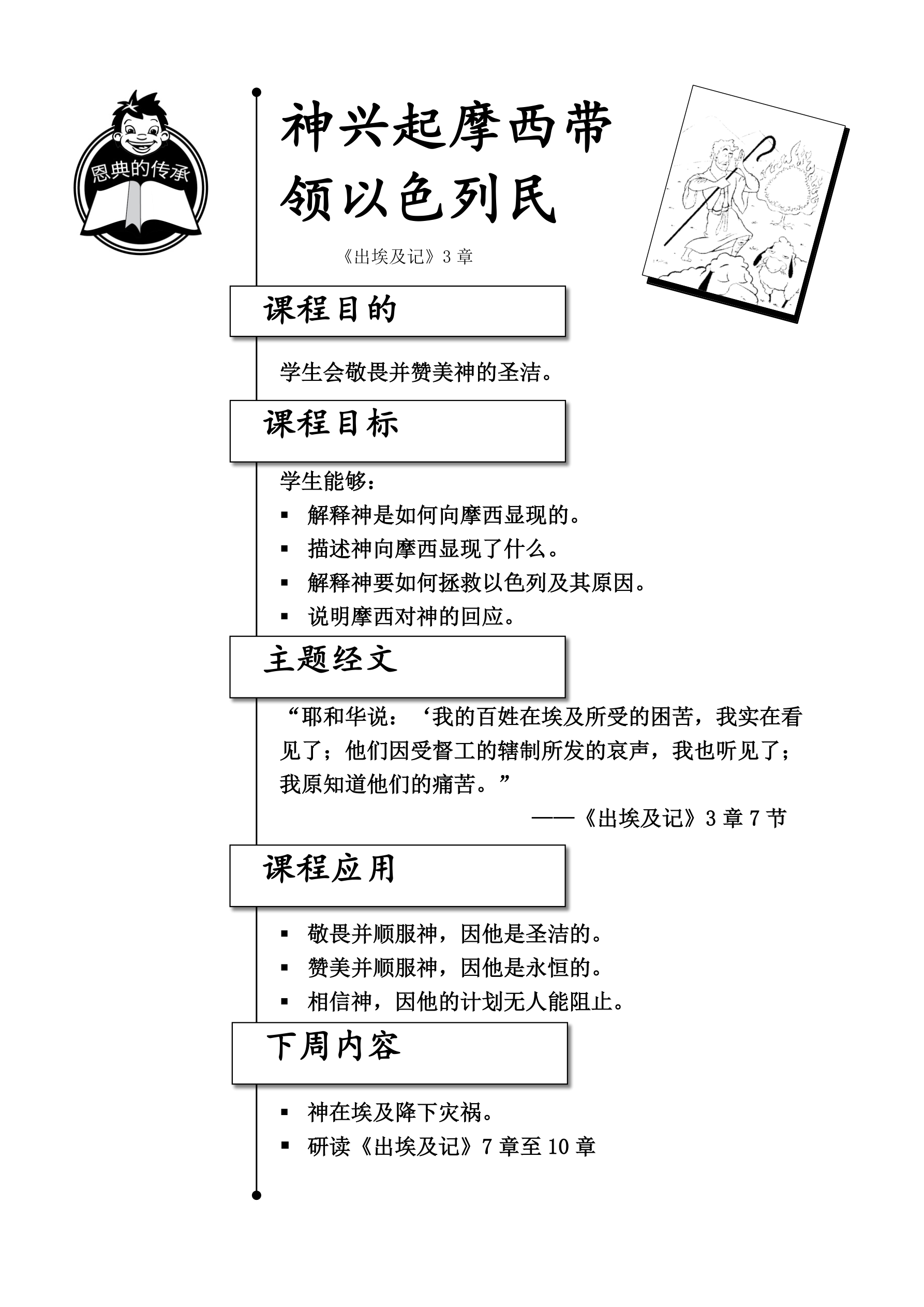 第2课:神兴起摩西带领以色列民 预备真理 “你们要将我这话存在心内,留在意中……也要这样教训你们的儿女……”——《申命记》11章18节至19节 请花时间来准备你的心思意念,按着正意分解真理的道(提后2