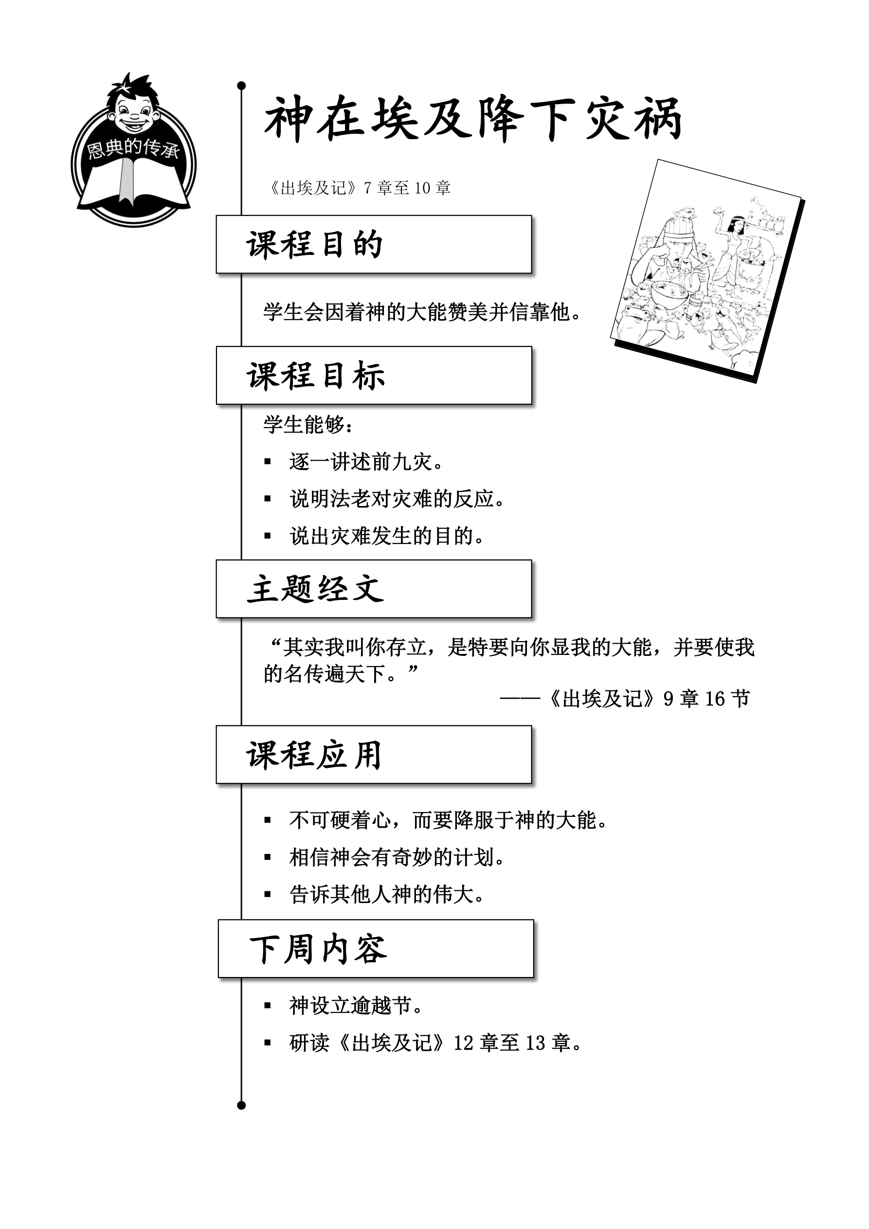 第3课:神在埃及降下灾祸 预备真理 “你们要将我这话存在心内,留在意中……也要这样教训你们的儿女……”——《申命记》11章18节至19节 请花时间来准备你的心思意念,按着正意分解真理的道(提后2:15