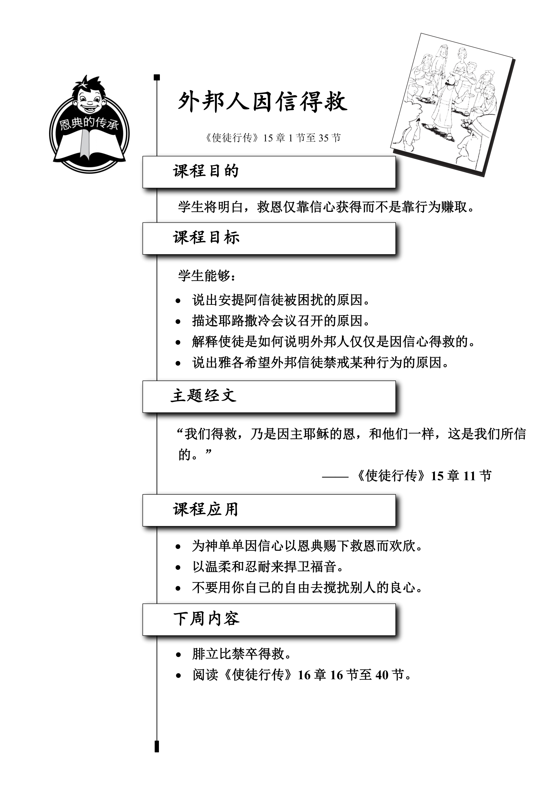第12课:外邦人因信得救 预备真理 “你们要将我这话存在心内,留在意中……也要这样教训你们的儿女……”——《申命记》11章18节至19节 请花时间来准备你的心思意念,按着正意分解真理的道(提后2:15